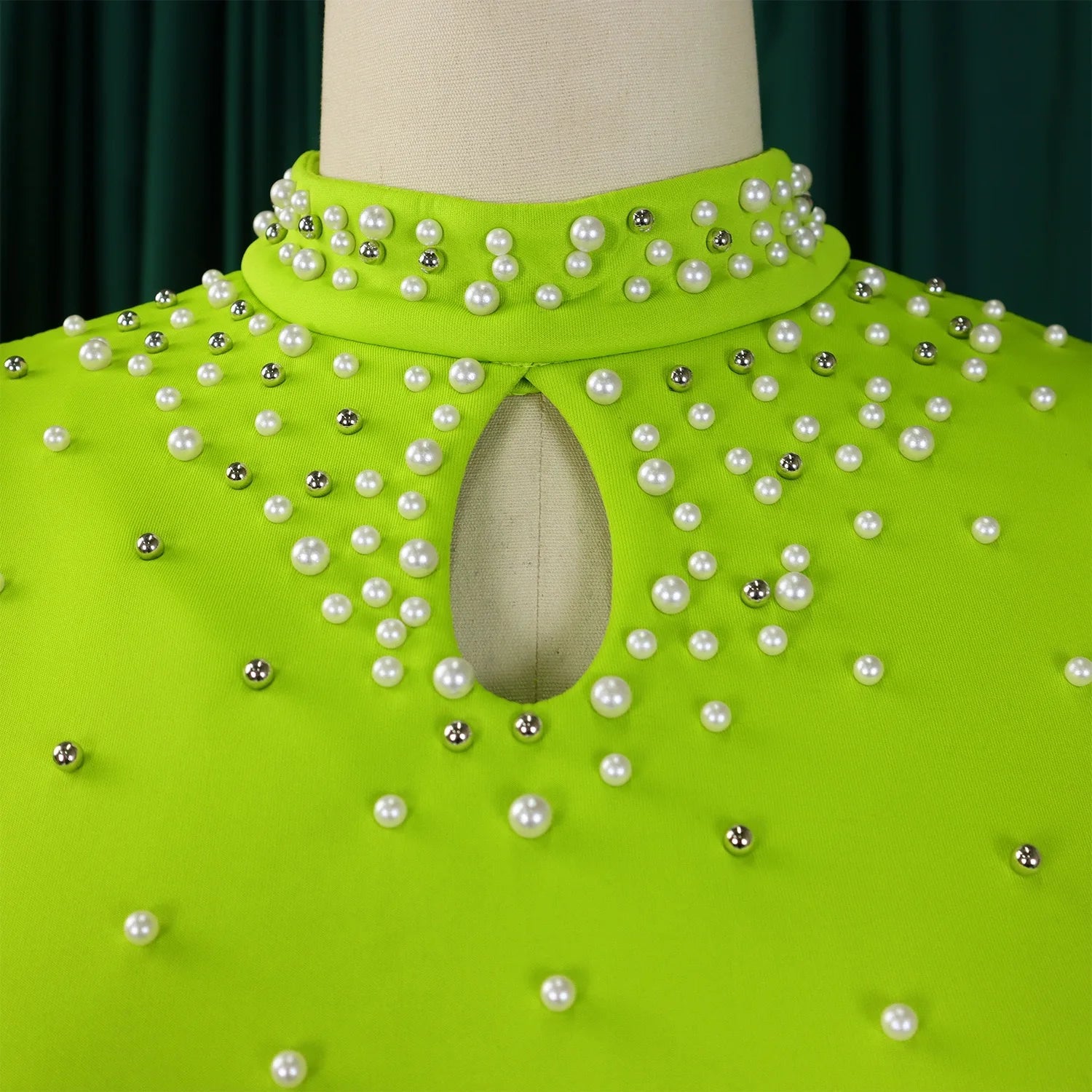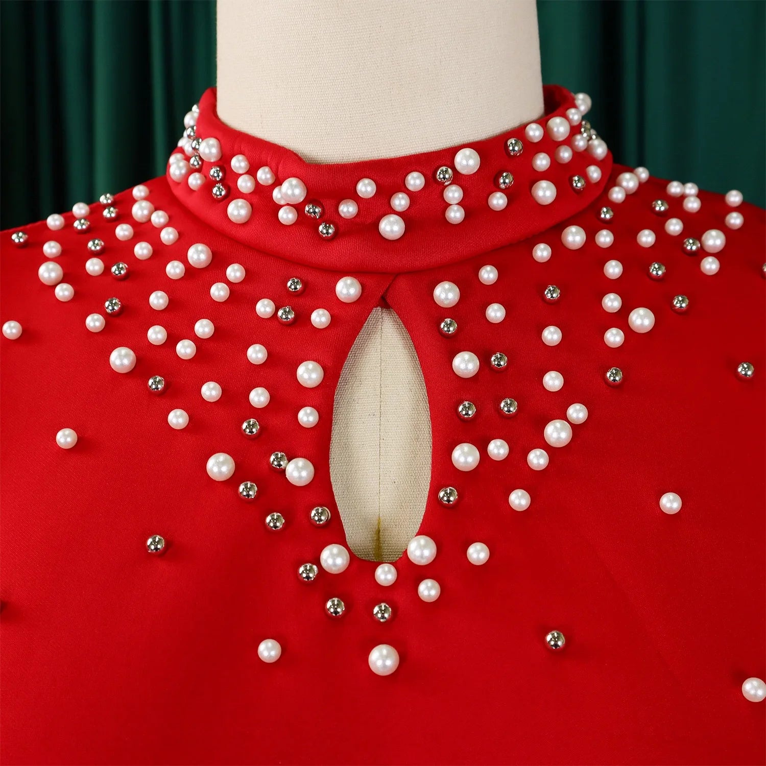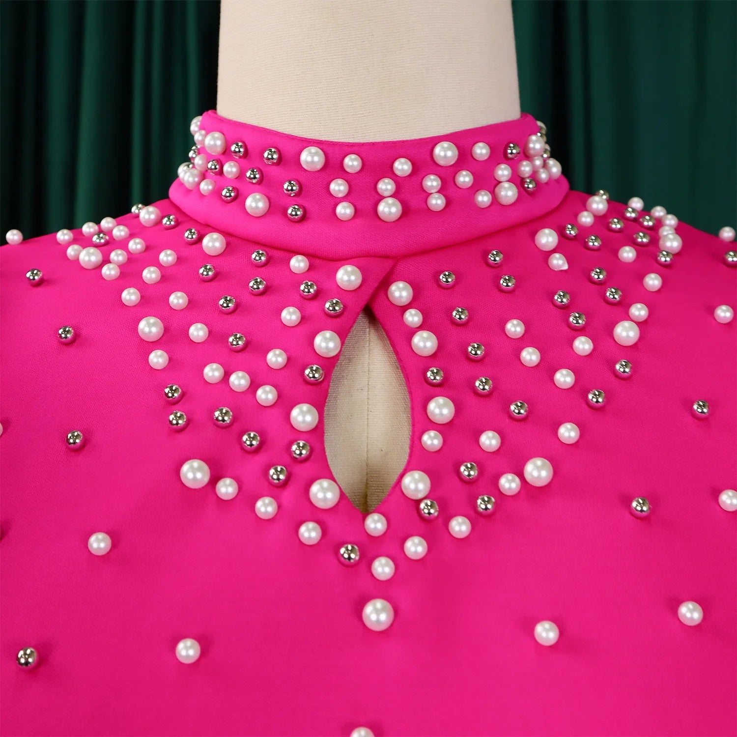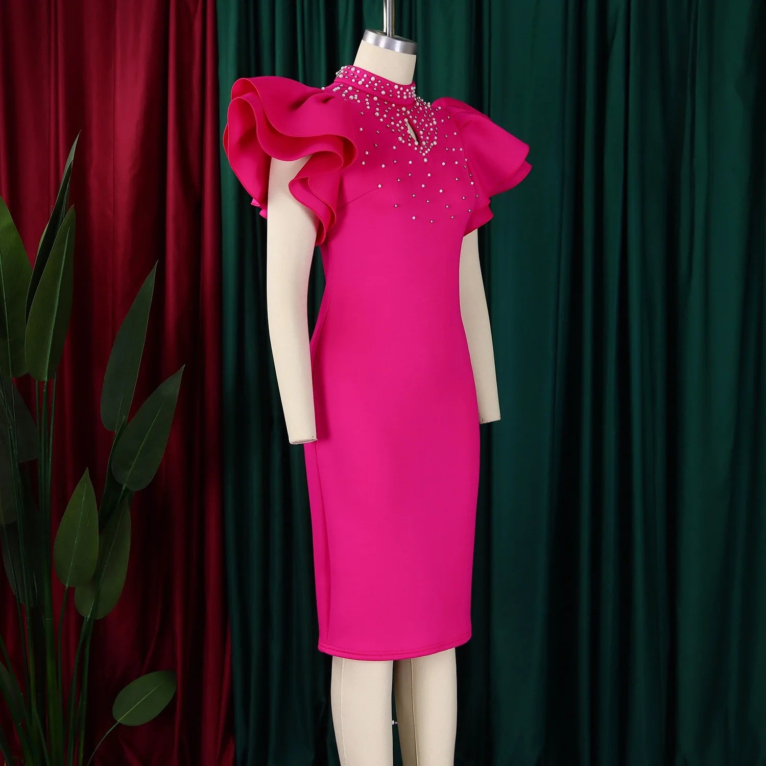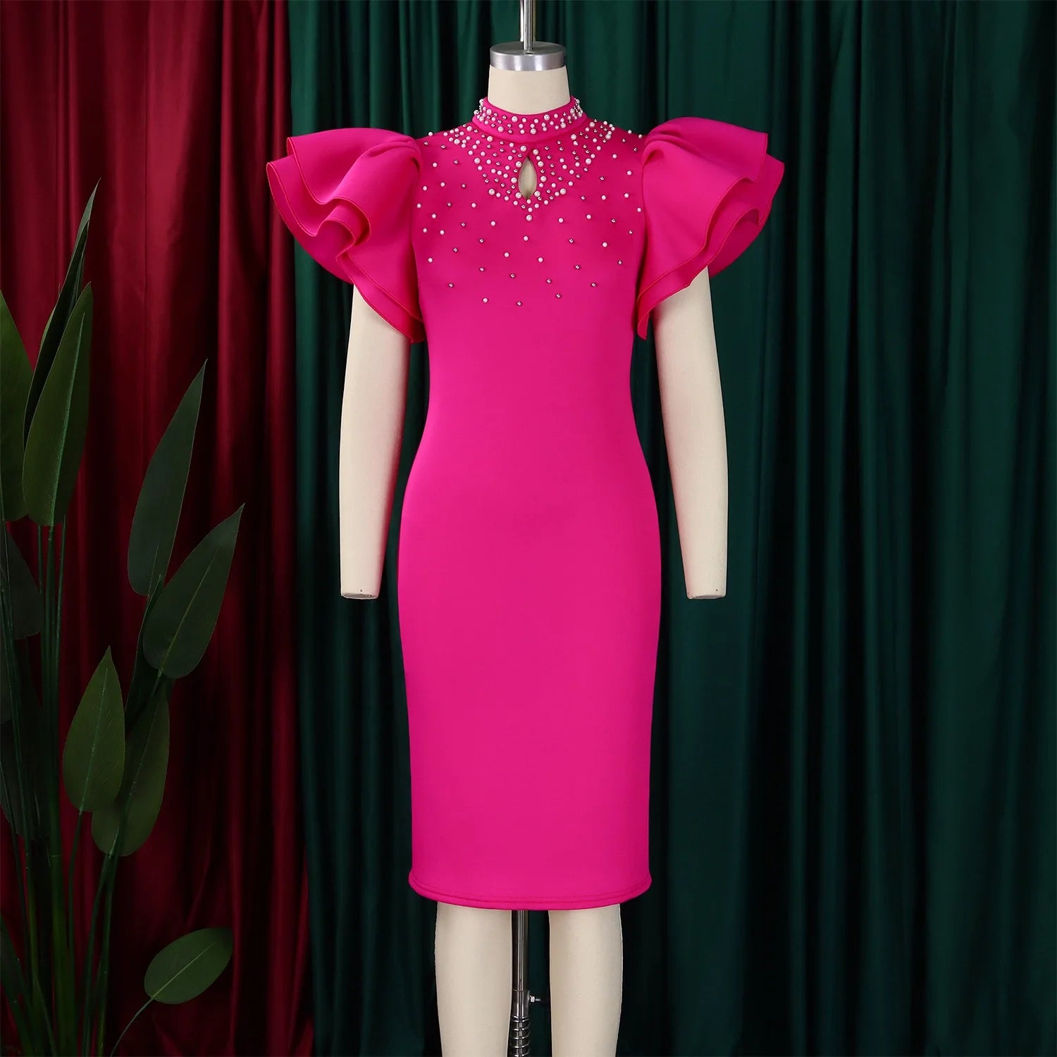 Elegant Dresses for Women O Neck Ruffles Sleeve Beaded Sheath Package Hips Mid Calf Luxury Birthday Party Dinner Vestidos Mujer