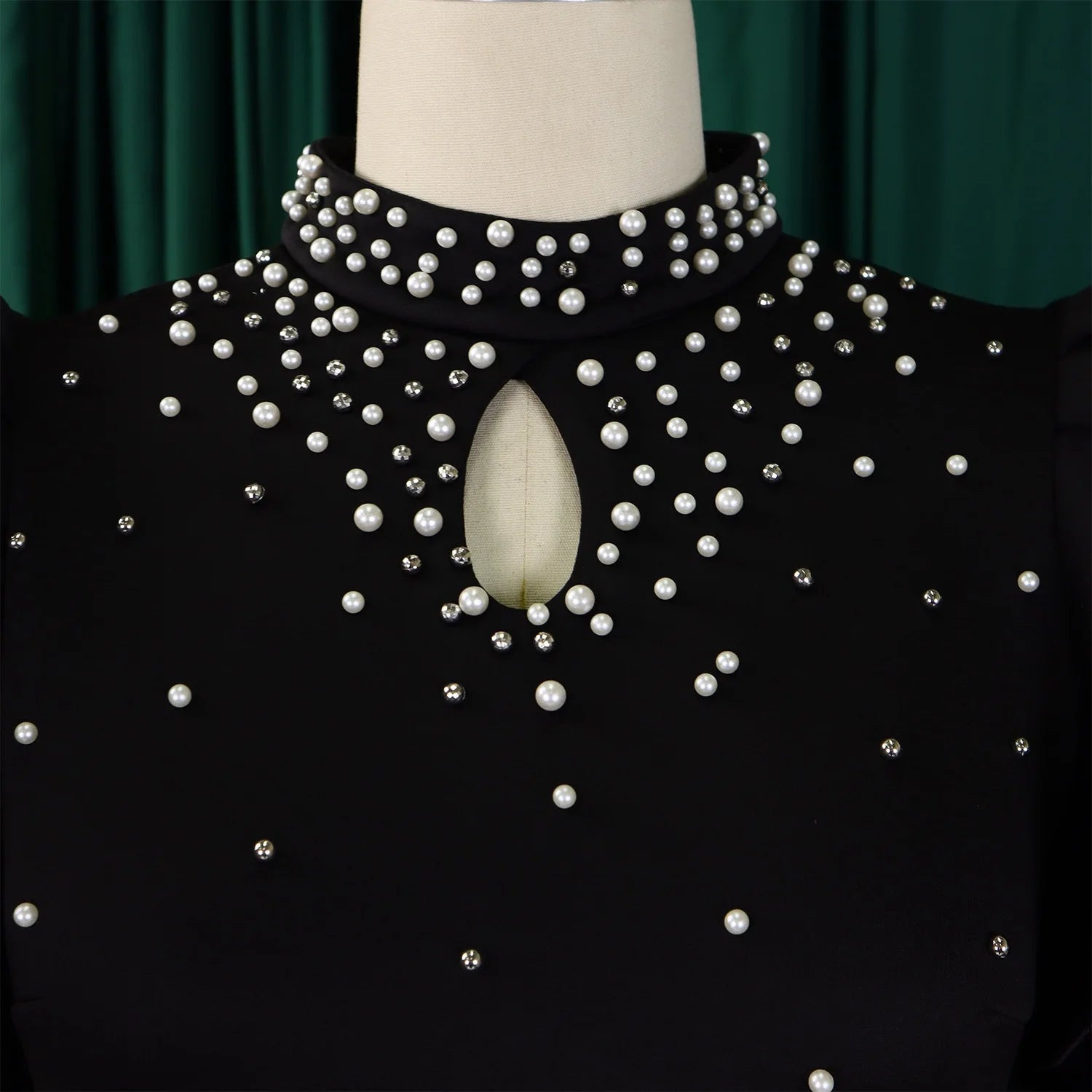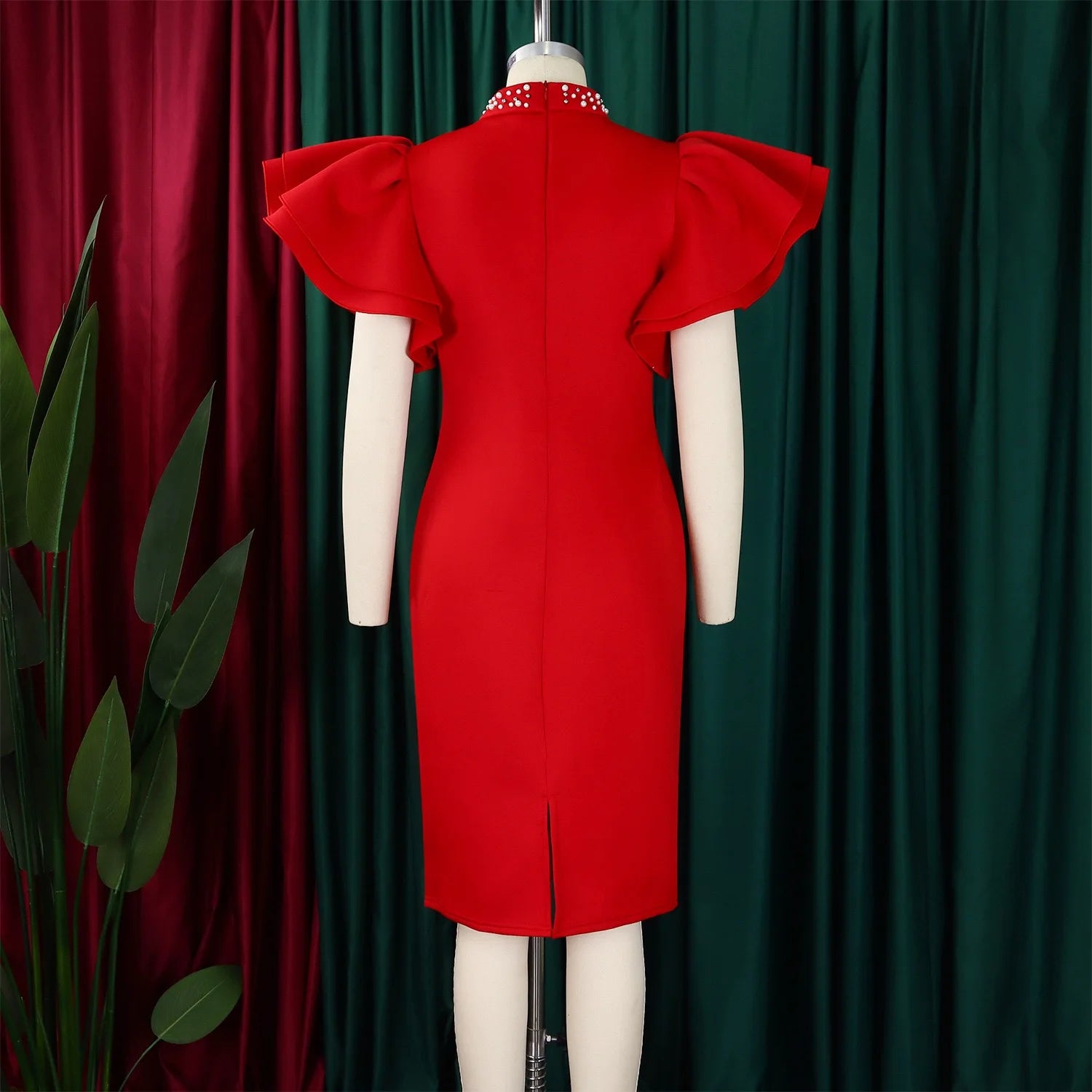 Elegant Dresses for Women O Neck Ruffles Sleeve Beaded Sheath Package Hips Mid Calf Luxury Birthday Party Dinner Vestidos Mujer