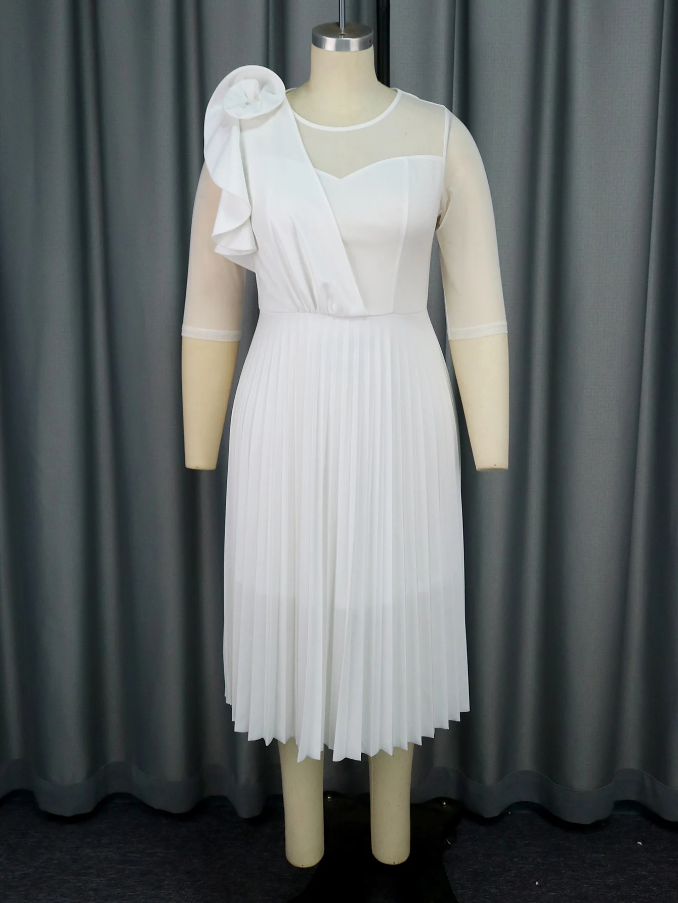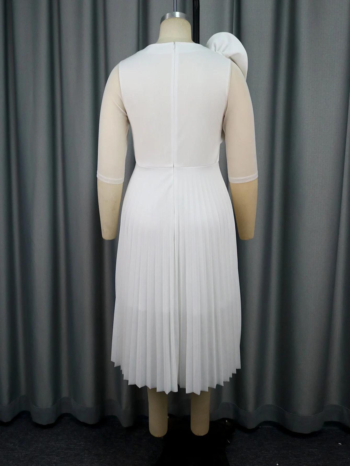 Elegant White Dresses for Women Pleated Ruffles Flower Tulle Sleeves Patchwork Classy Occasion African Wedding Guest Birthday