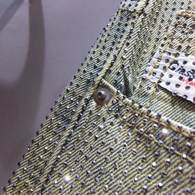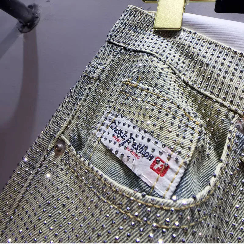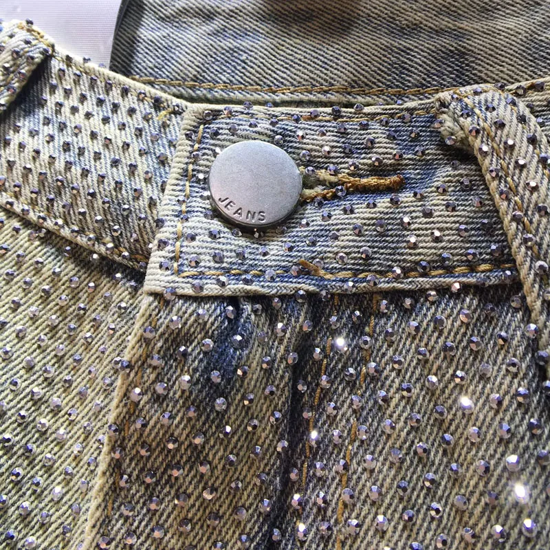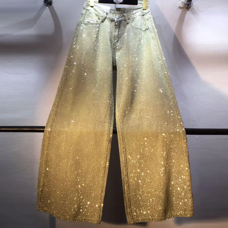 European Jeans, 2025 Spring Clothing New Heavy Industry Full Body Hot Diamond High Waist Skinny Wide Leg Straight Jeans Women
