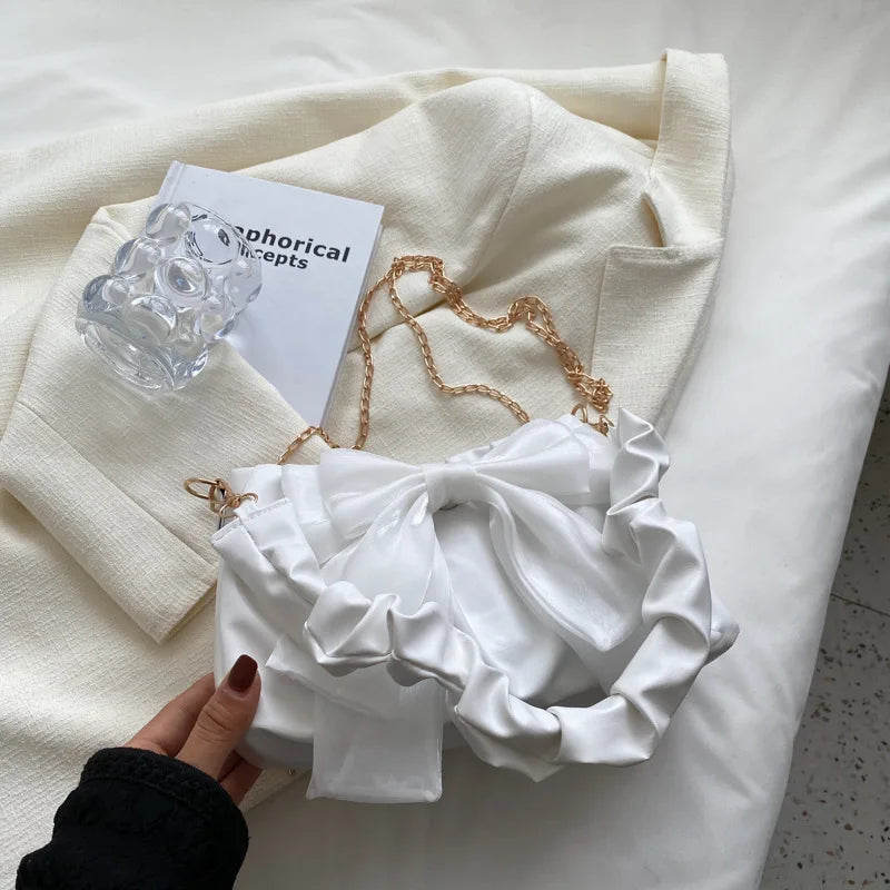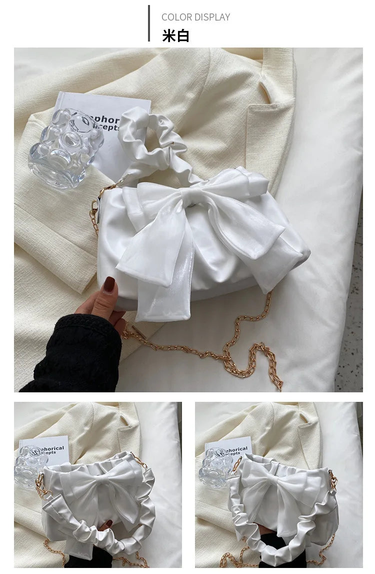 Fashion Casual Handbags For Women Cute Bow Black White Blue Kahki PU Handbags Trendy Daily Shoulder Underarm Bags bolsa feminina