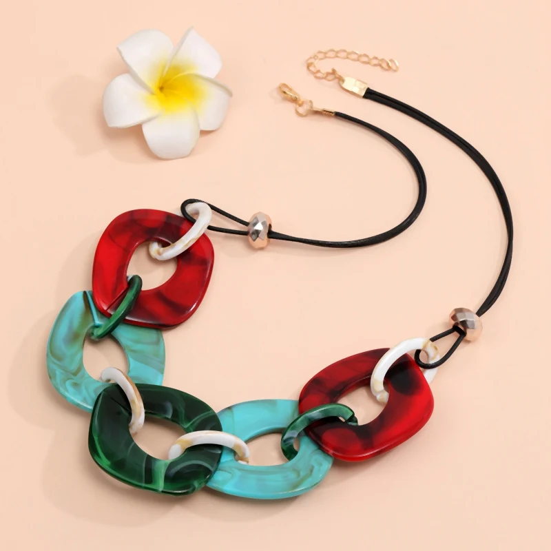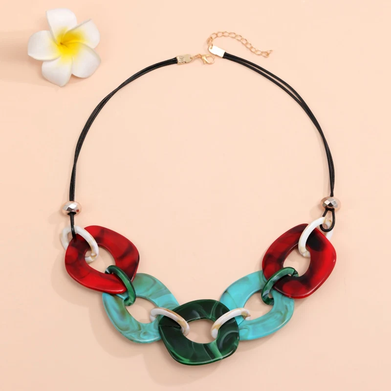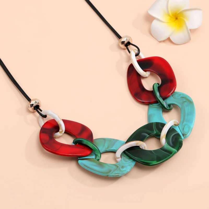 Fashion Handmade Acrylic Geometric Necklace Collar Jewelry for Women Statement Bib Necklaces Pendants