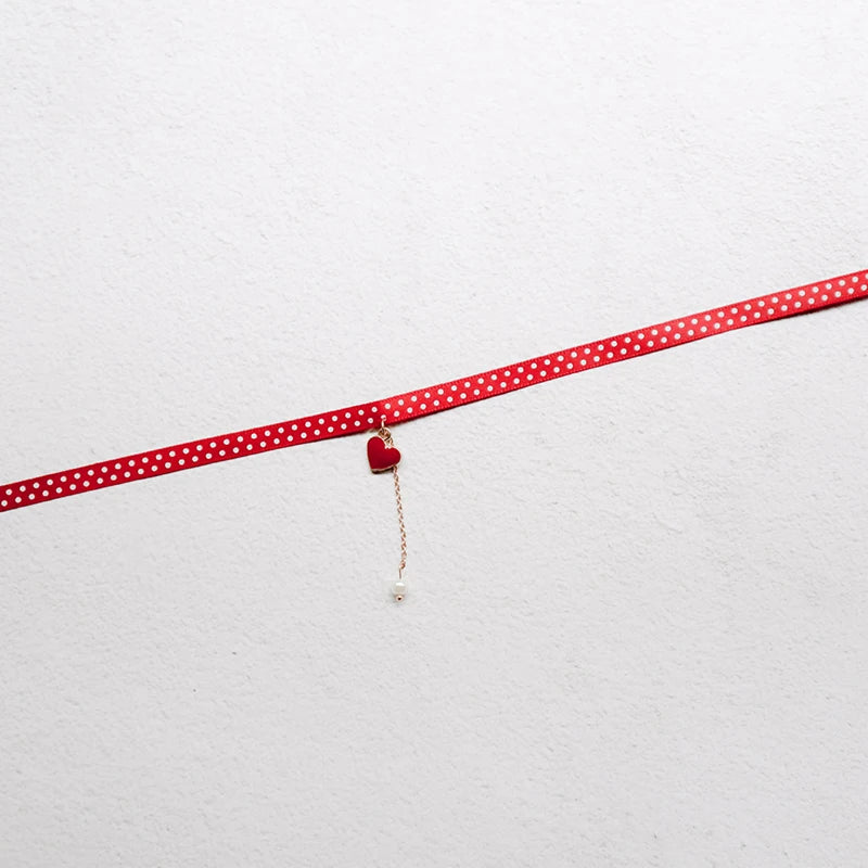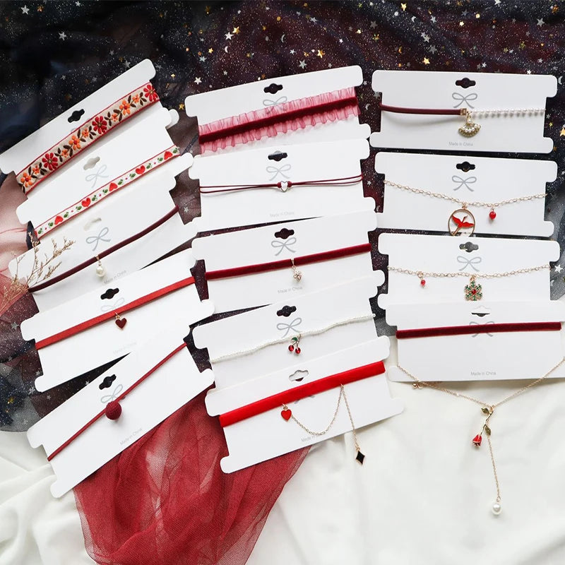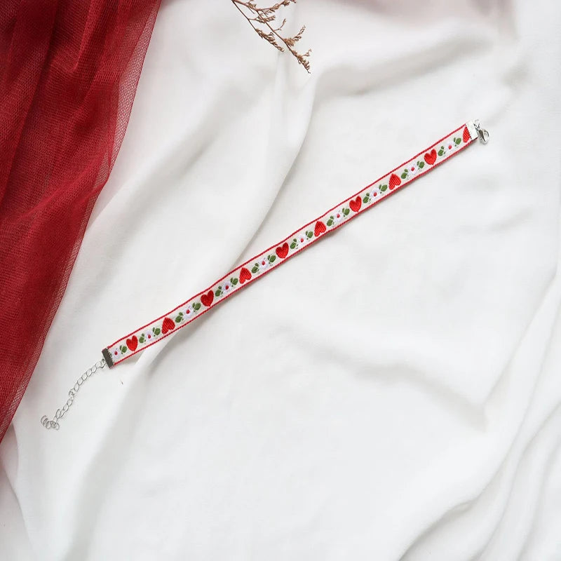 New Fashion Lace Necklace For Women Adjustable Elegant Snowfake Strawberry Pendant Red Velvet Choker Necklace Collar Party Jewelry Gift For Girls