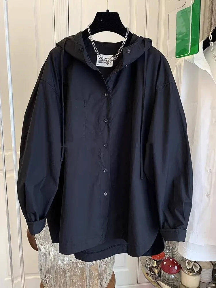 Fashion Women Tops Oversized Blouses Women's Clothing 2025 Blusas Mujer De Moda Long Sleeve Hooded Shirt Casual White Basic Coat