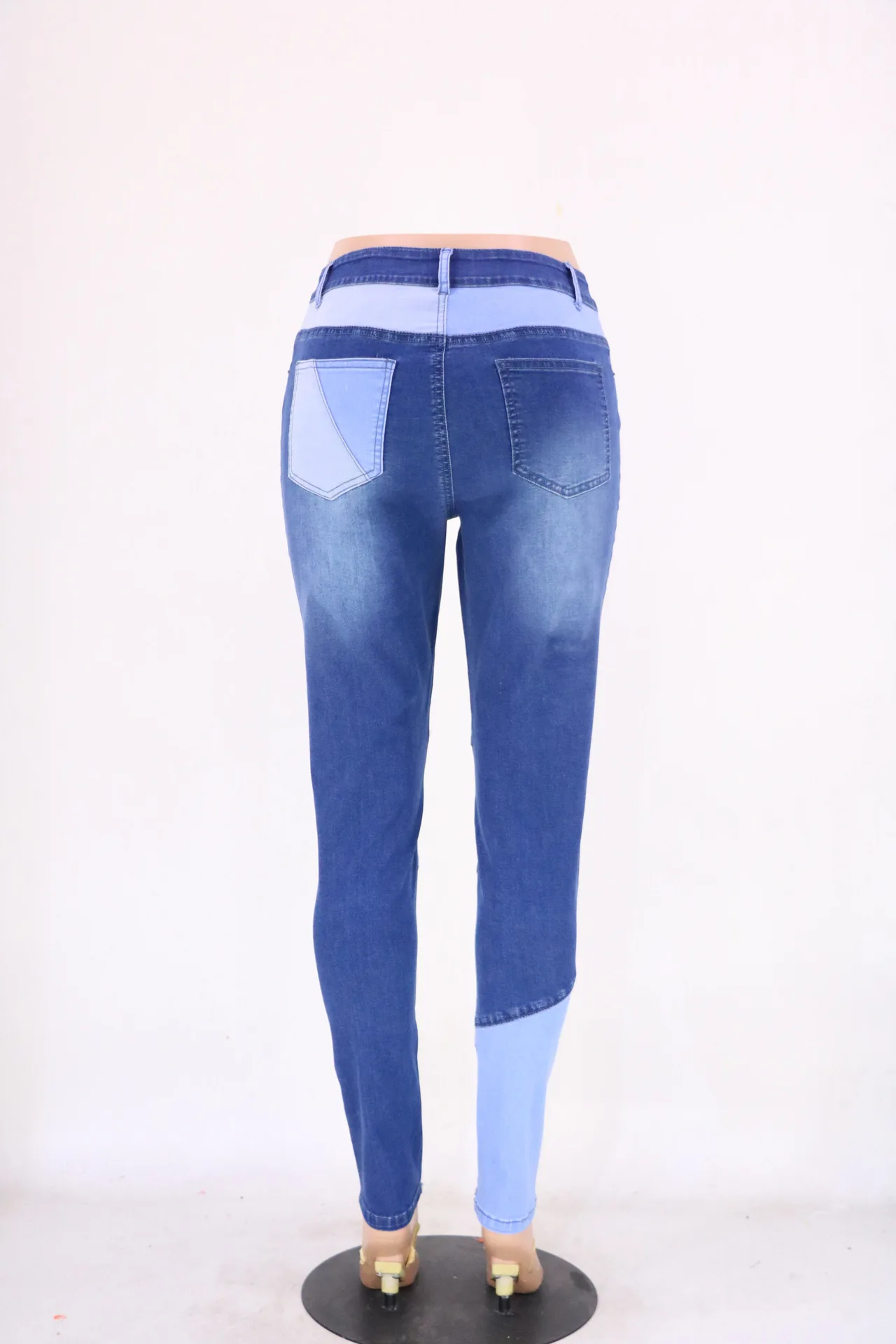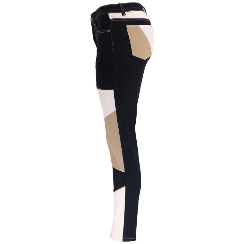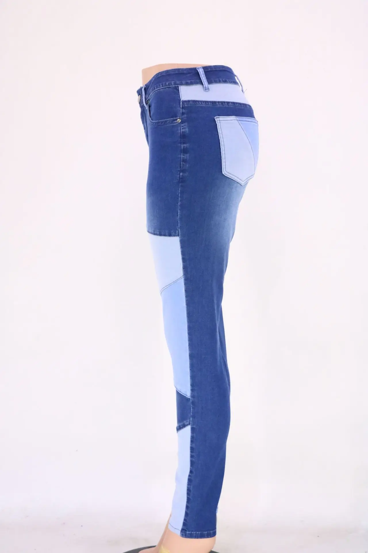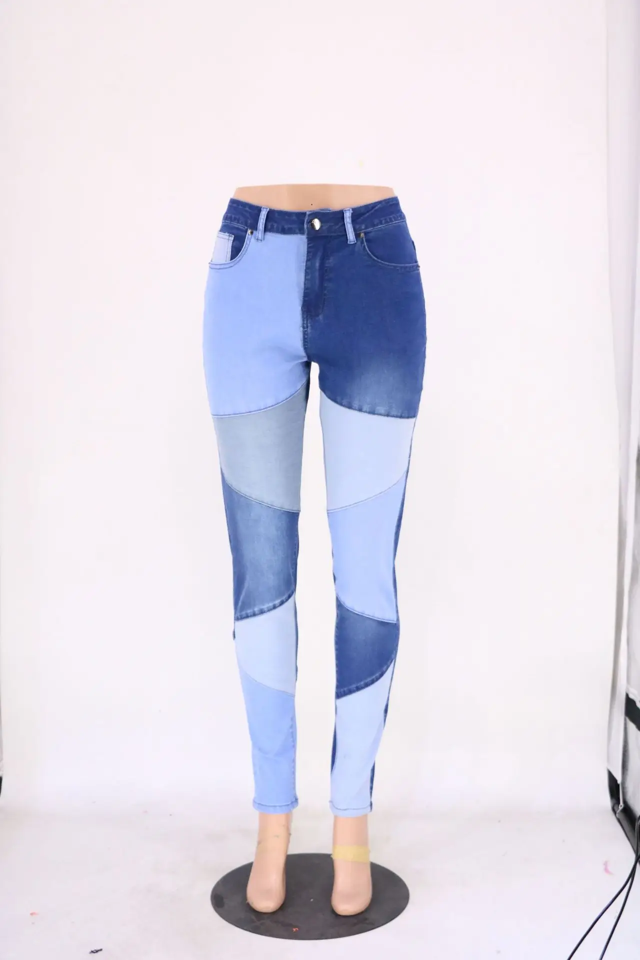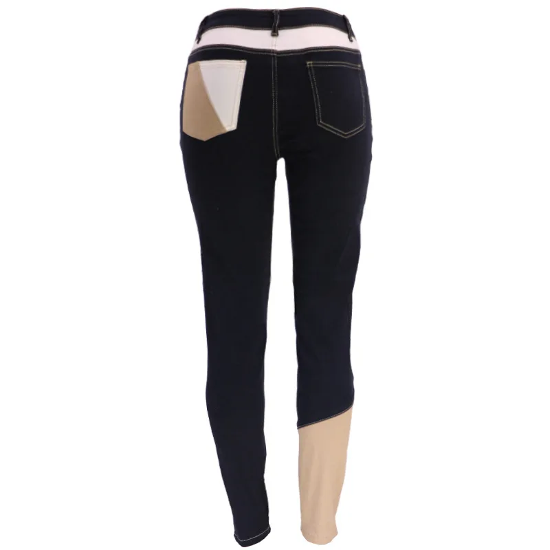 Fashionable Women's High Waist Denim Skinny Leggings High Quality Pencil Jeans Color Block Patchwork 3D Fall Spring Summer
