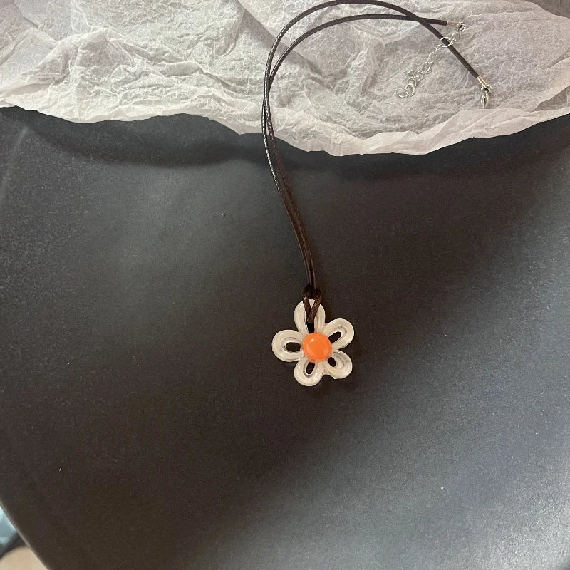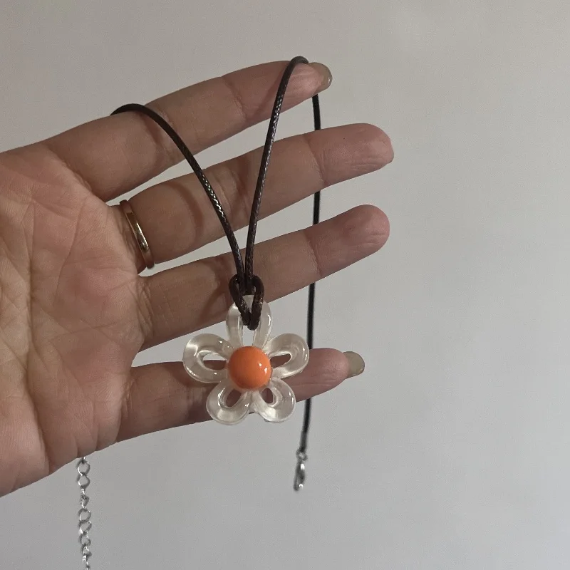 Flower Aesthetic Necklace For Women Adjustable Chain Girls Party Birthday Gift Amber Jewelry Gift Accessories Wholesale