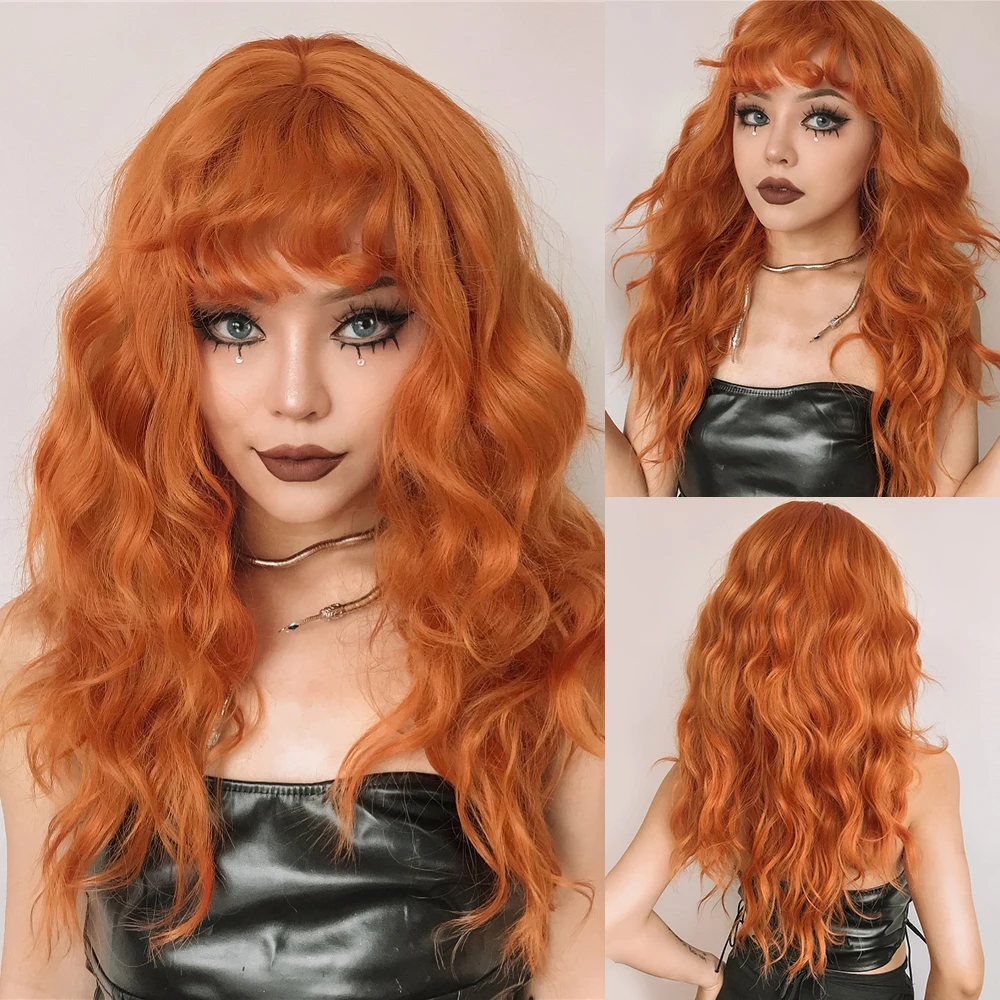 Ginger Curly Synthetic Wigs for Women Long Orange Wigs with Bangs Heat Resistant Hair Colored Party Cosplay Hair Wig
