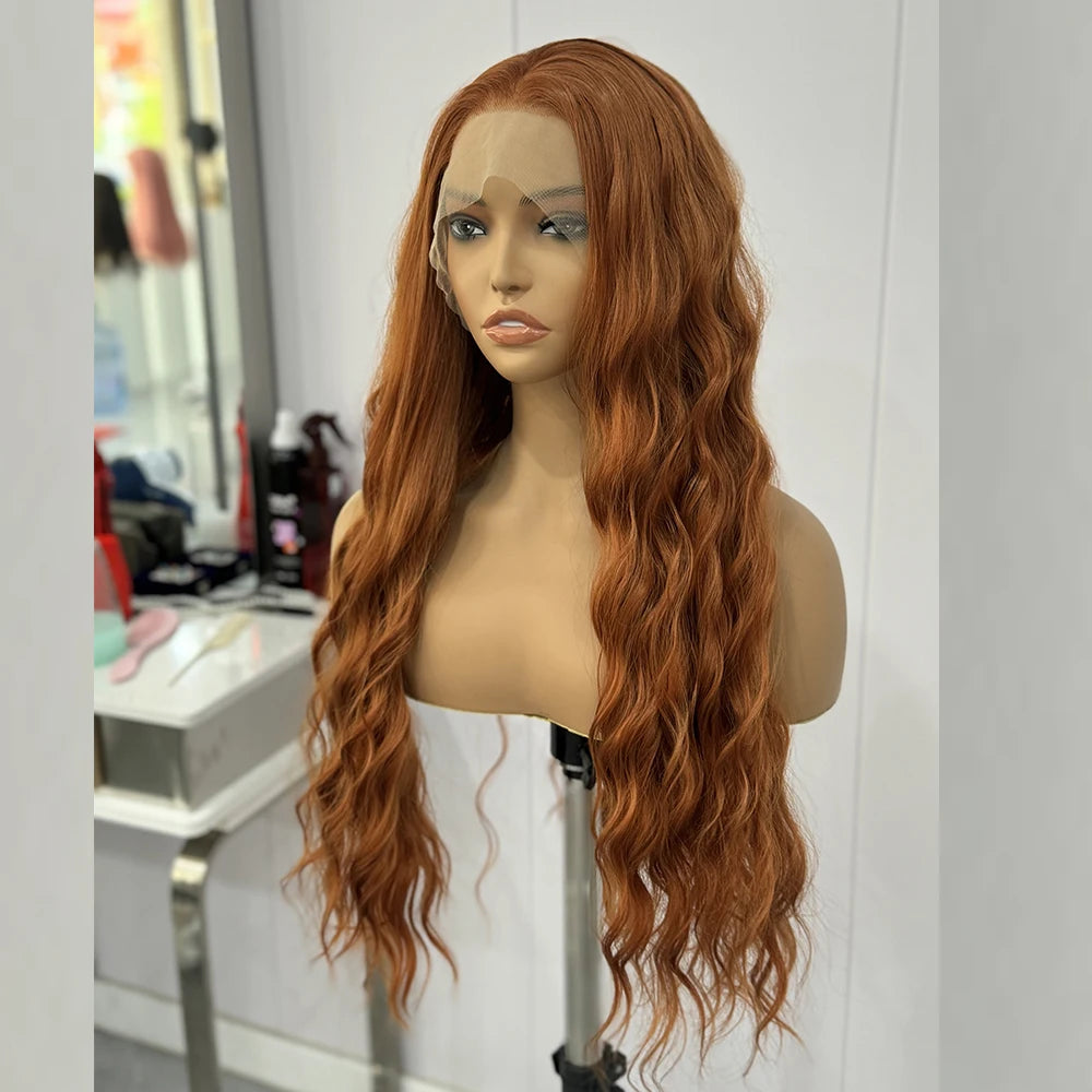 Ginger Wig Loose Wave Synthetic Lace Front Wigs For Women Long Auburn Orange Wig Deep Wave Lace Hair Heat Resistant Cosplay wear