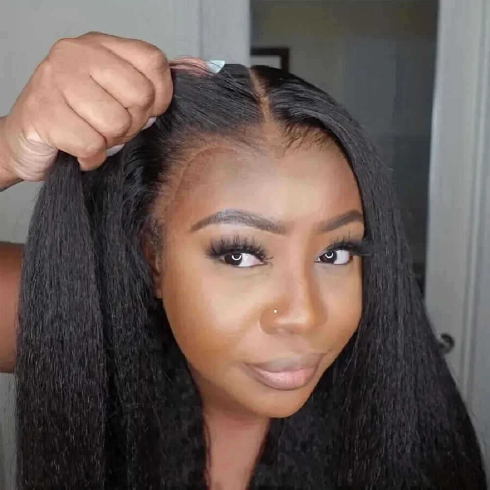 Glueless Wigs Human Hair For Women Kinky Straight Human Hair Wigs Pre Plucked Easy To Wear And Go 4x4 Lace Front Wig Nautural