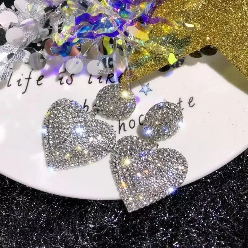 Heart Earrings Women's Luxurious Geometric Full Rhinestone Earrings Korean Gold Color Love 2023 Fashion Jewelry Accessories