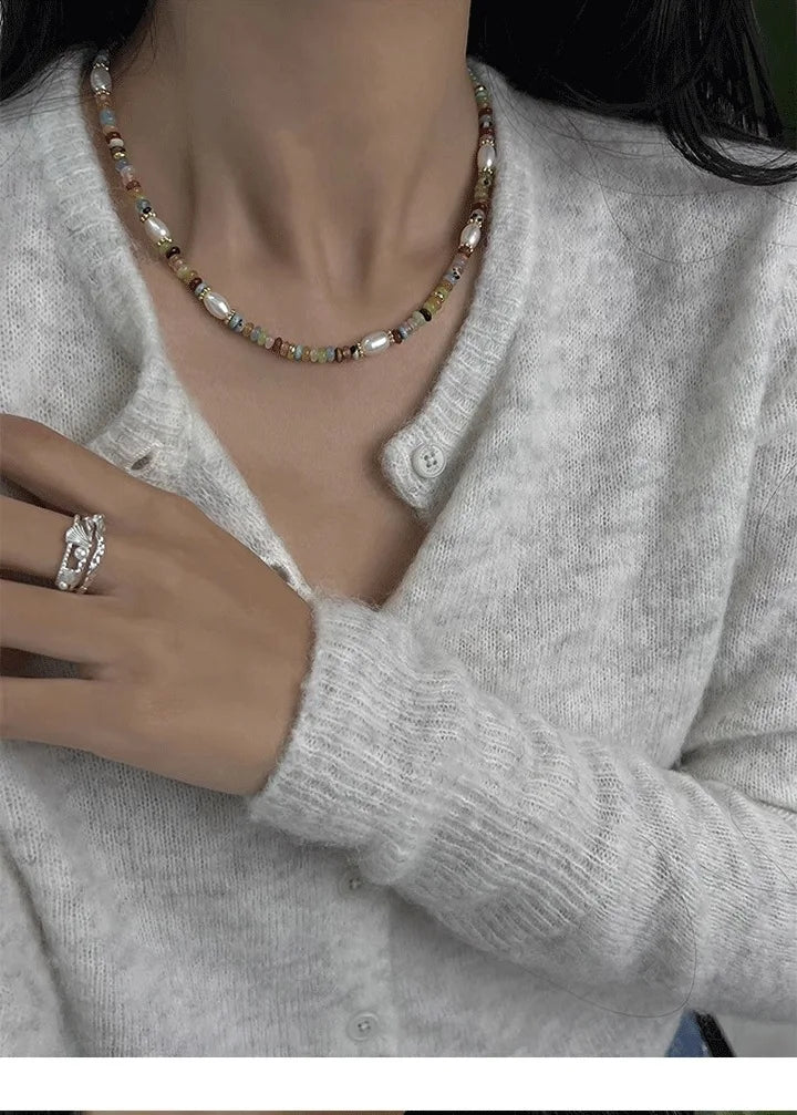 High Quality Colorful Beads Stone Natural Freshwater Pearl Necklaces For Women Retro Gold Color Clavicle Chain Jewelry Gifts