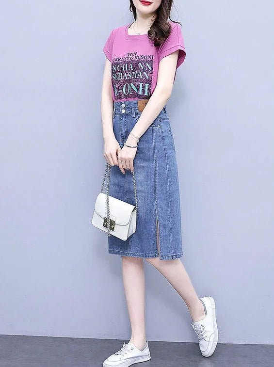 Jeans Skirts for Women Woman Denim Skirt High Waist Midi Maxi Long with Pocket Slit Chubby Modest Quality Luxury Elegant Stylish