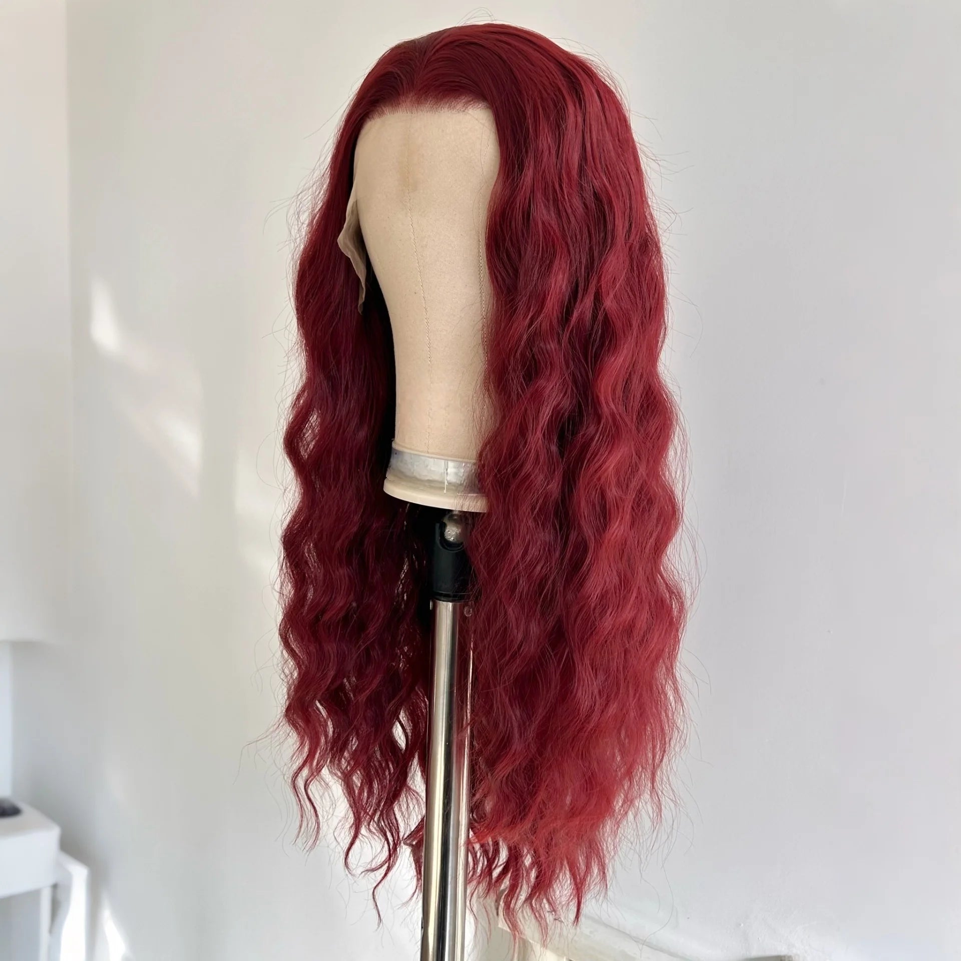 XQC Long Wine Red Wavy Wig for Women Lace Front Wigs Natural Looking 26 Inch Free Part Curly Wig Heat Resistant Synthetic Wigs for Daily Party Use