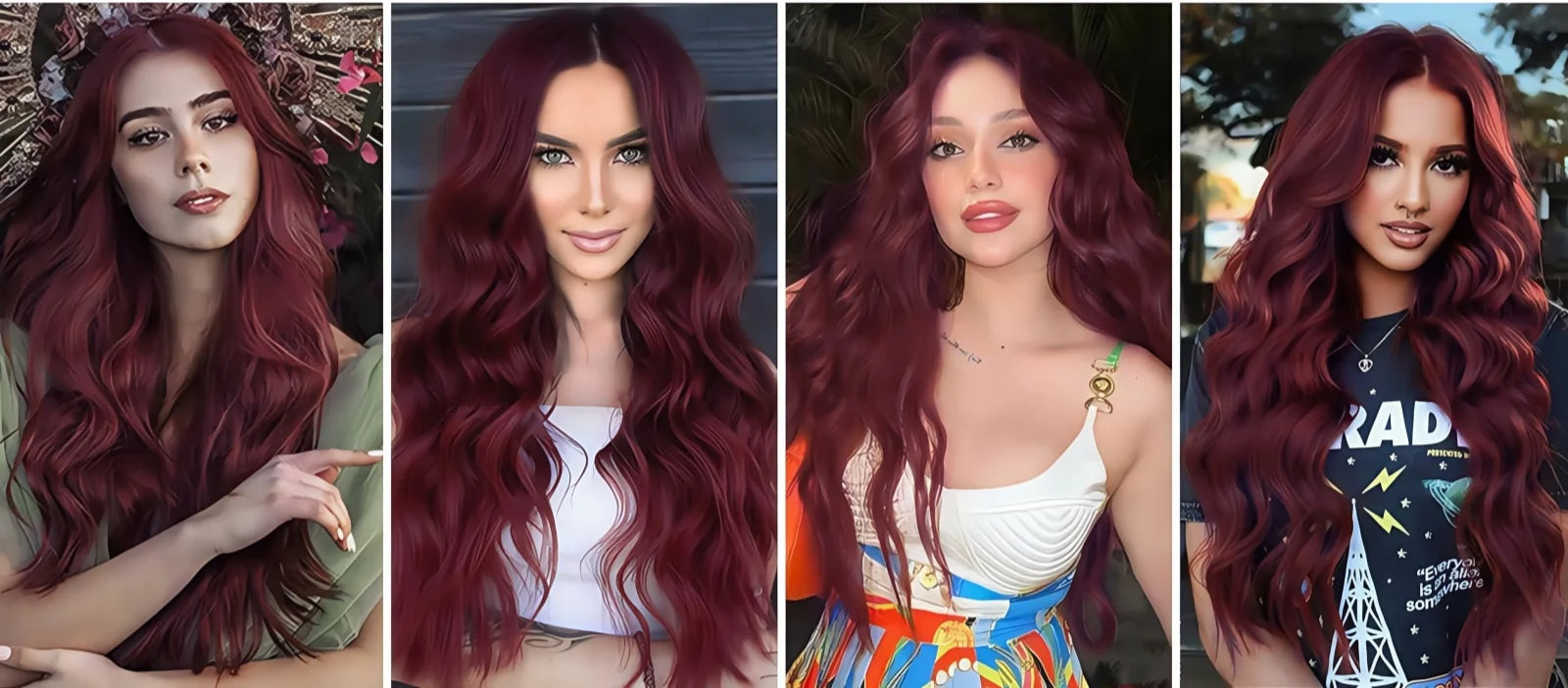 Long Wine Dark Red Wavy for Women Synthetic Free Part Loose Curly Burgundy Heat Resistant Fiber Wigs for Daily Party Cosplay