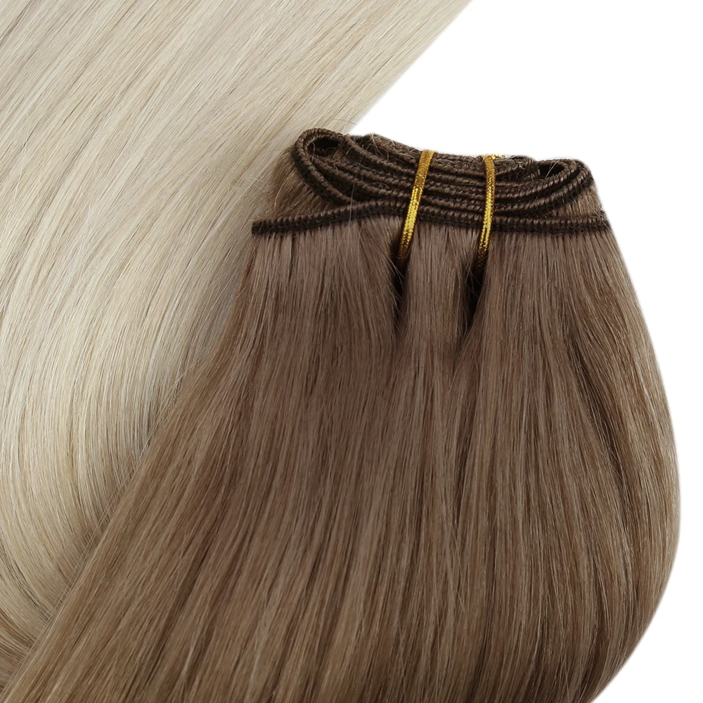 Moresoo Human Hair Bundles Weave in Double Wefted Machine Remy Hair Balayage Hair Pieces for Women Straight Weft Hair Extension