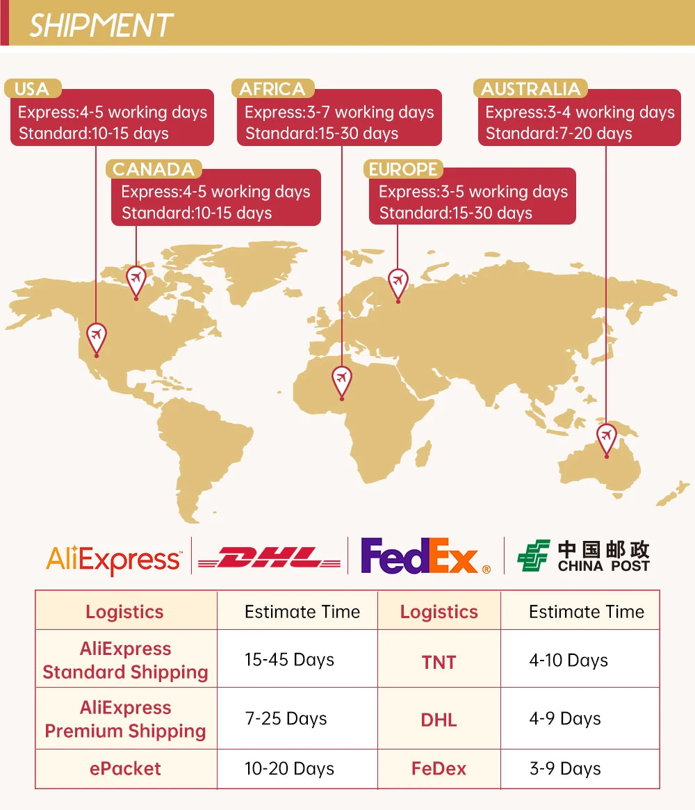 7.Shipping Terms: Ship Via Post Office, DHL, Fedex, Aliexpress Shipping.