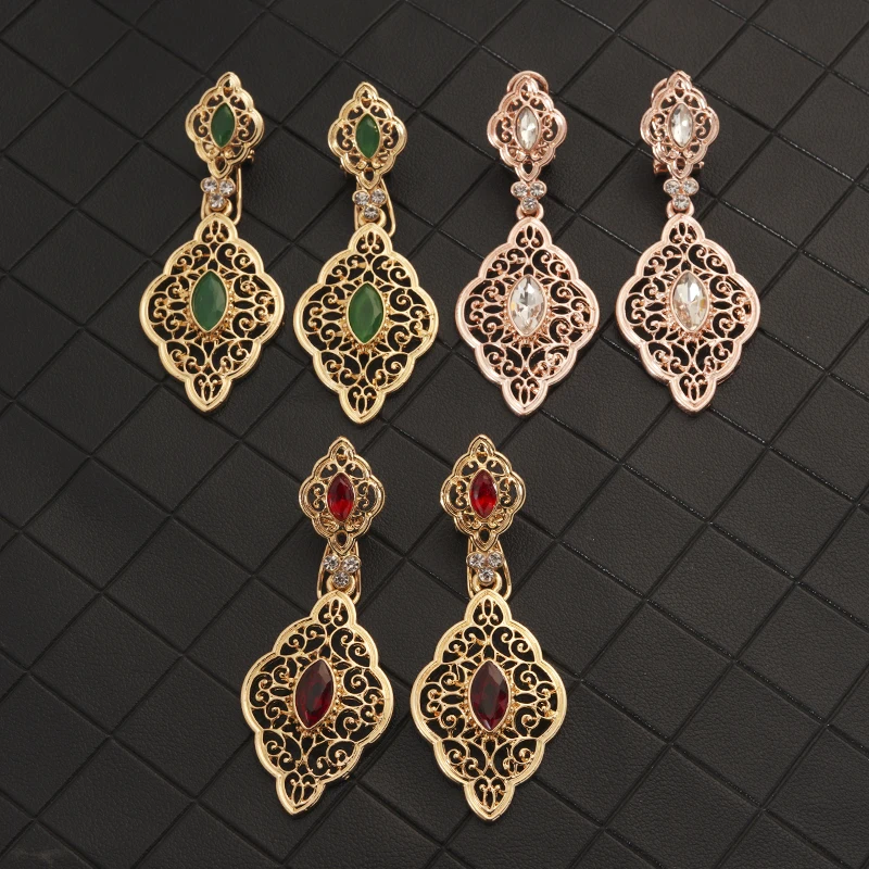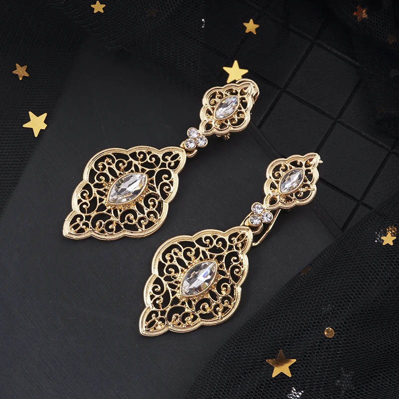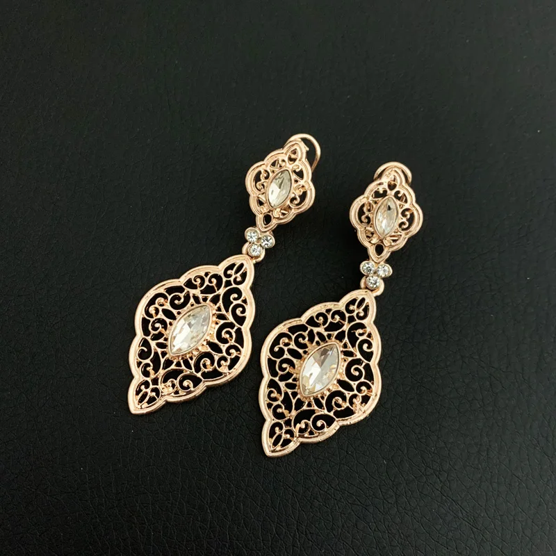 Neovisson Fashion Golden Earrings Hollow Flower Drop Earrings Bridal Jewelry Earrings With Rhinestone Women Earrings Gift