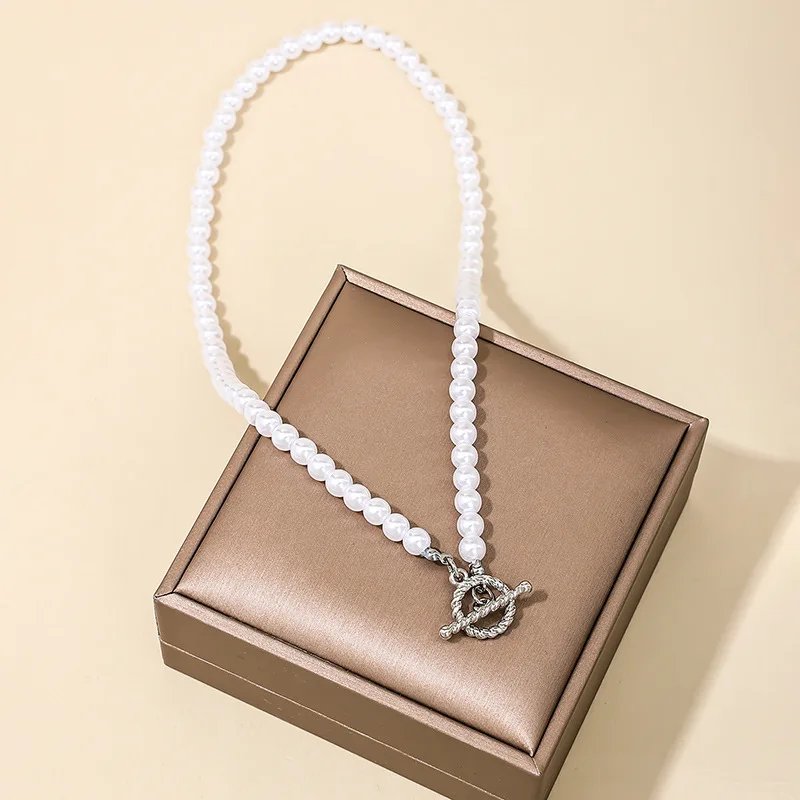 New Fashion Baroque Pearl Chain Necklace Women Collar Wedding Punk Toggle Clasp Circle Lariat Bead Choker Necklaces Jewelry