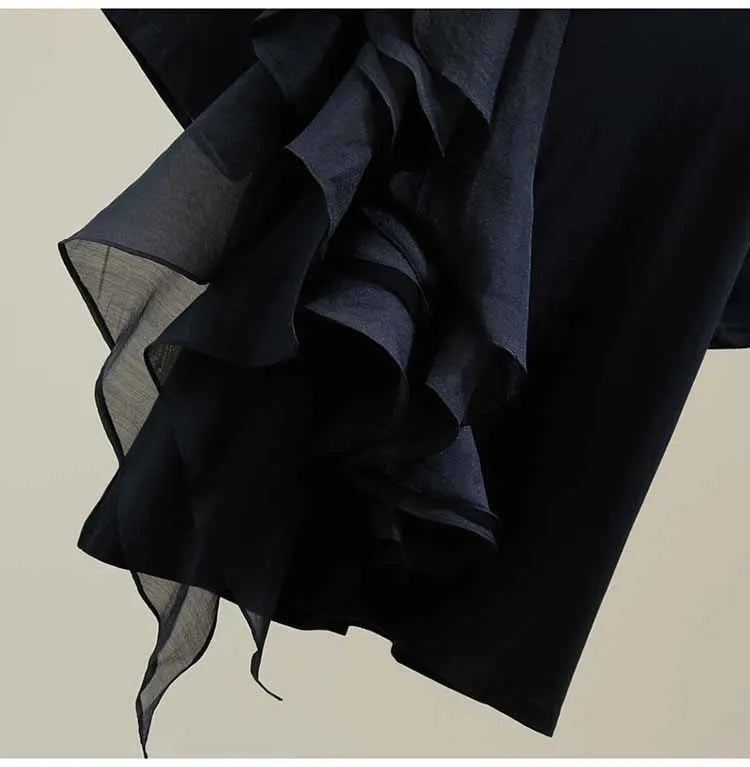 Patchwork Ruffle White Tops For Women O Neck Short Sleeve Casual T Shirt Female Fashion New Clothing 2022 Summer