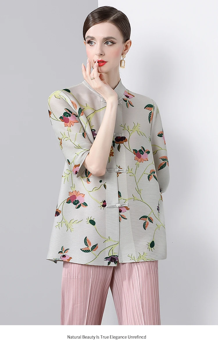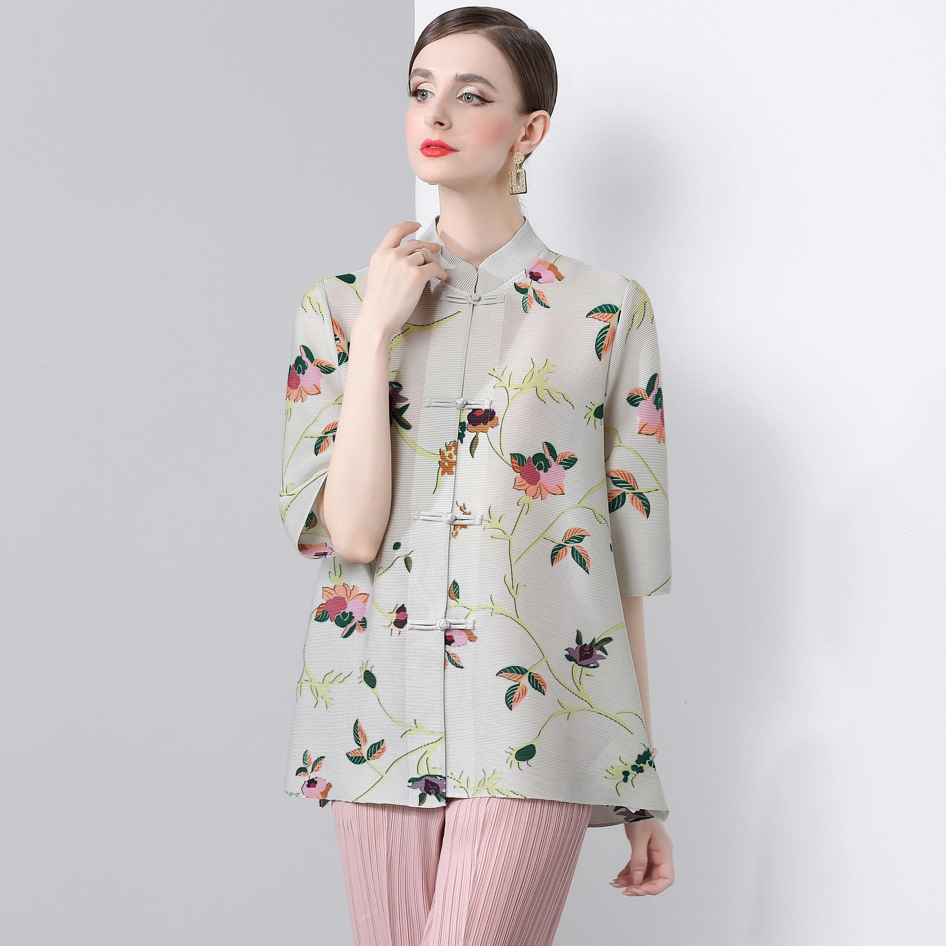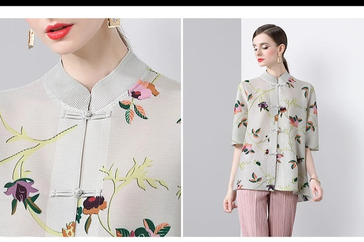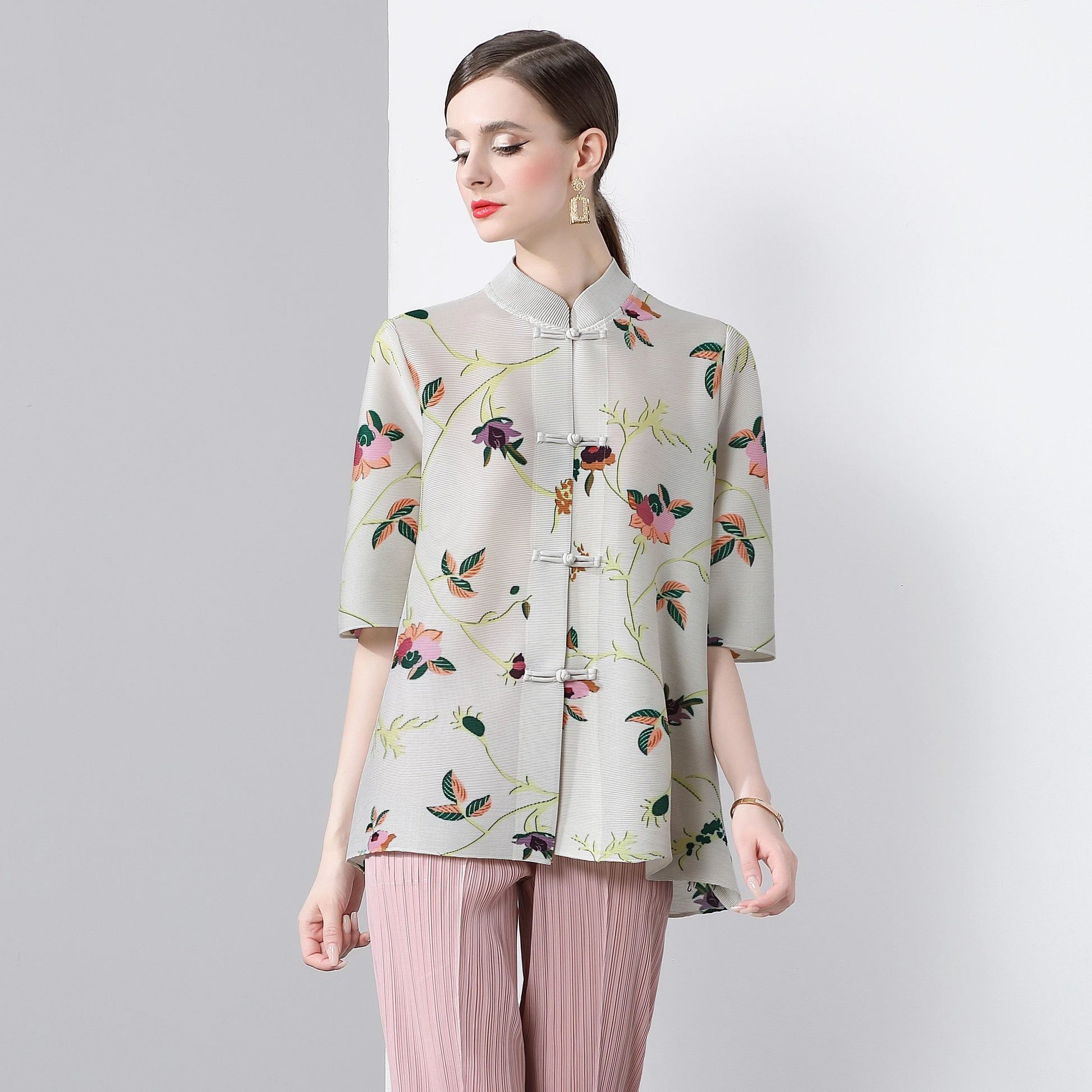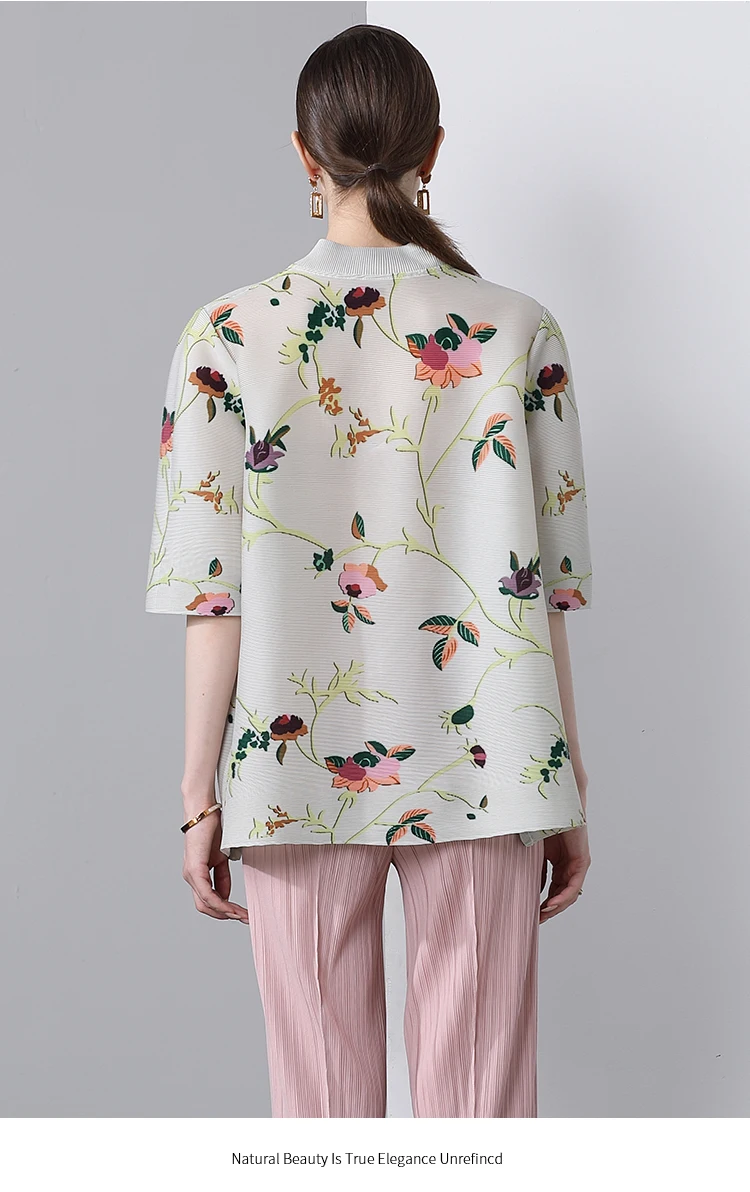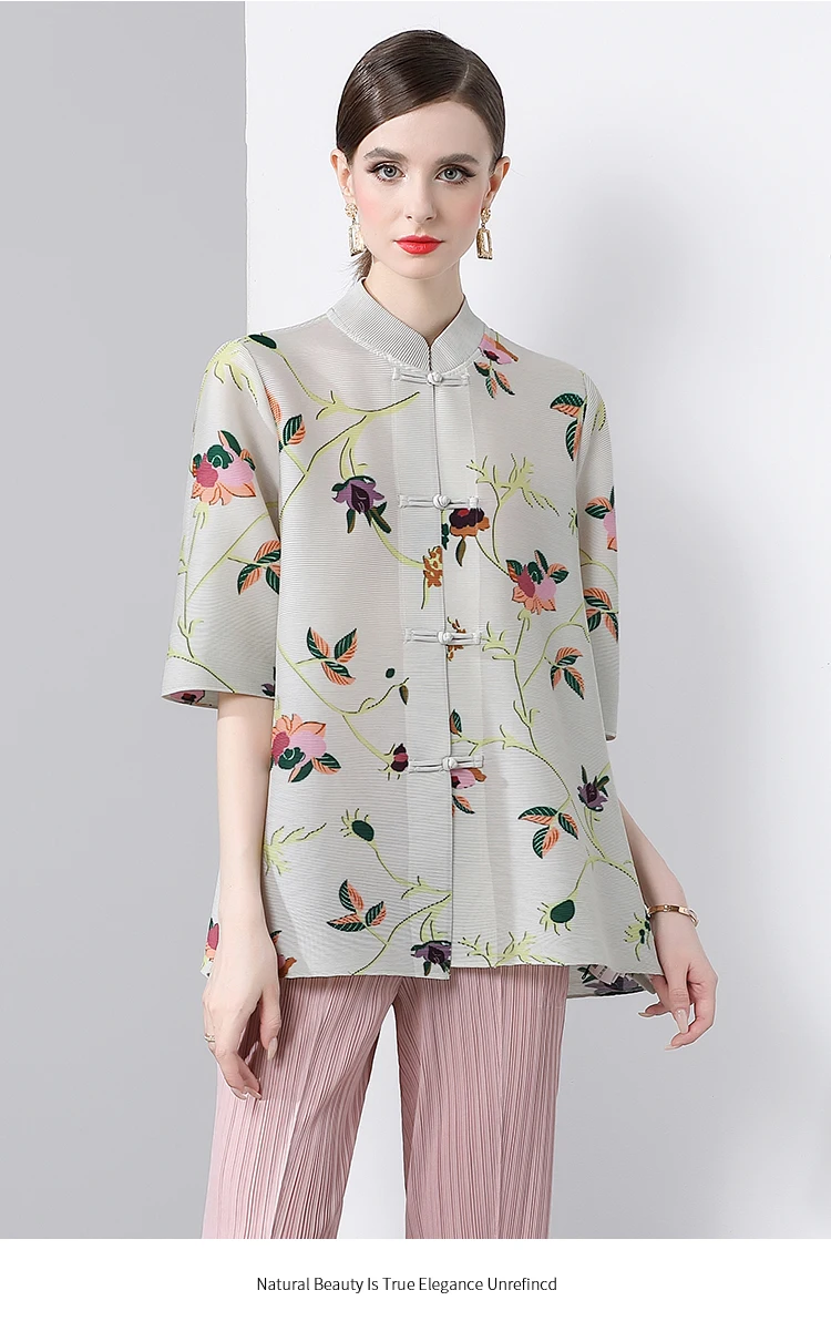 Pleated Tops for Women Summer Printed Shirts Loose Mom Wear Commuter Printed Short Sleeves Women Clothes