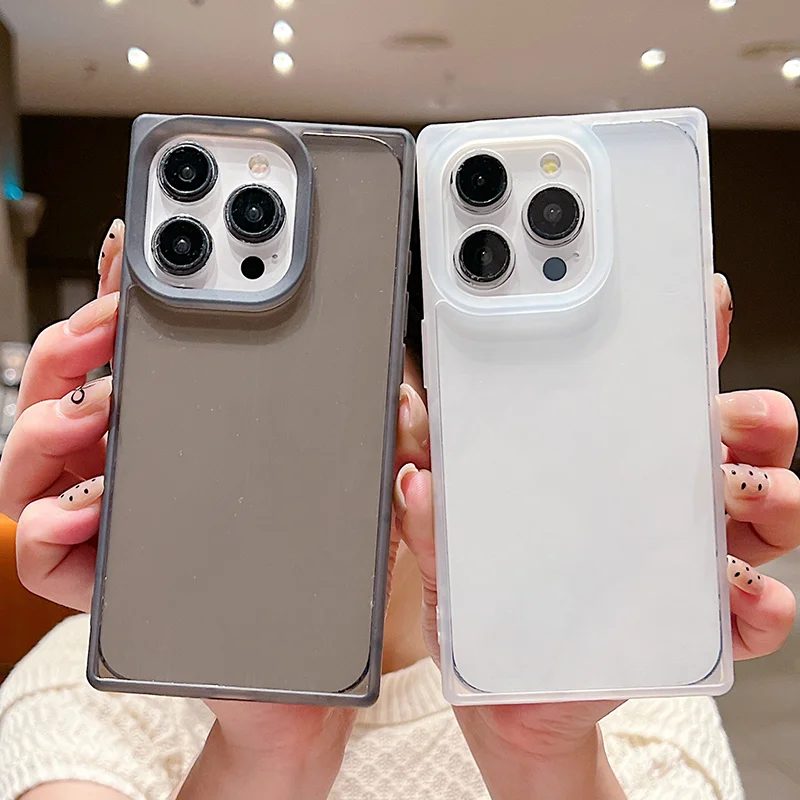 Rectangular Clear Case For iPhone 16 15 Pro Max 14 Plus 13 12 Pro Max 11 Shockproof Camera Lens Protection Soft TPU Phone Cover