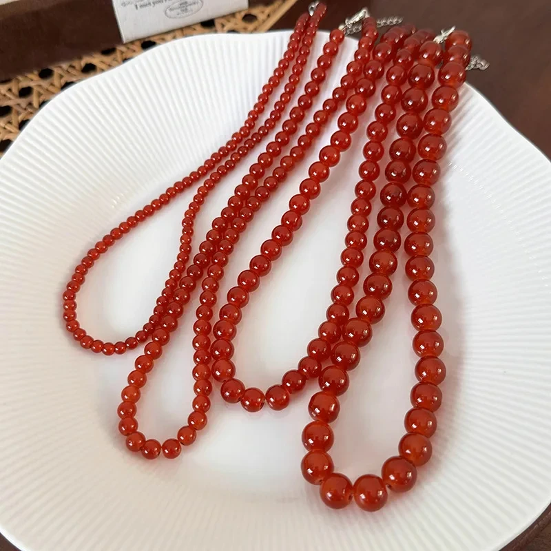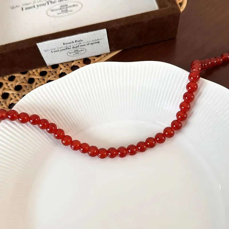 Red Beaded Necklace for Women Glass Bead Clavicle Chokers Exquisite Elegant Neck Necklace Aesthetic Jewelry Party Accessories