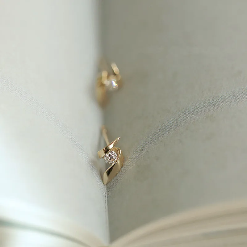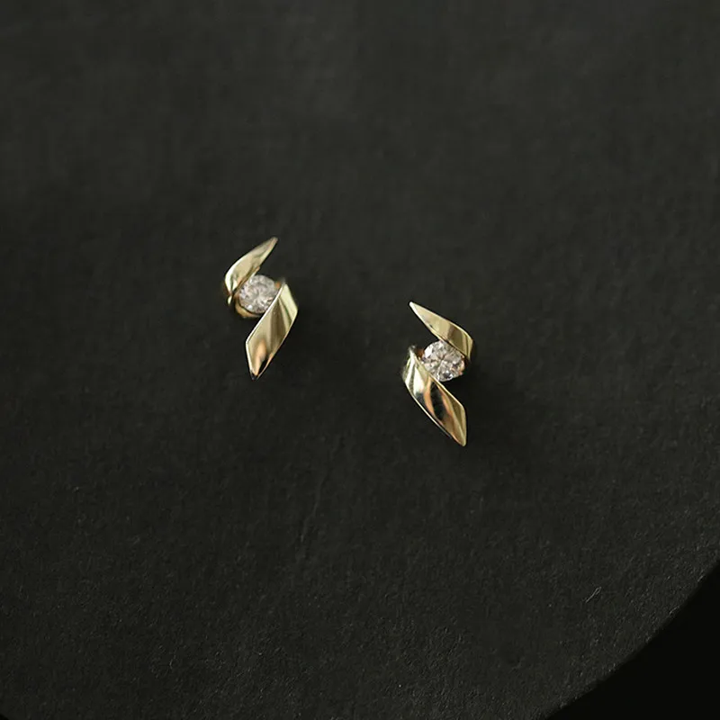 S925 Sterling Silver 14K Gold Plated Earrings for Women Inlaid Zircon Simple Rotating Earrings All-Match Jewelry