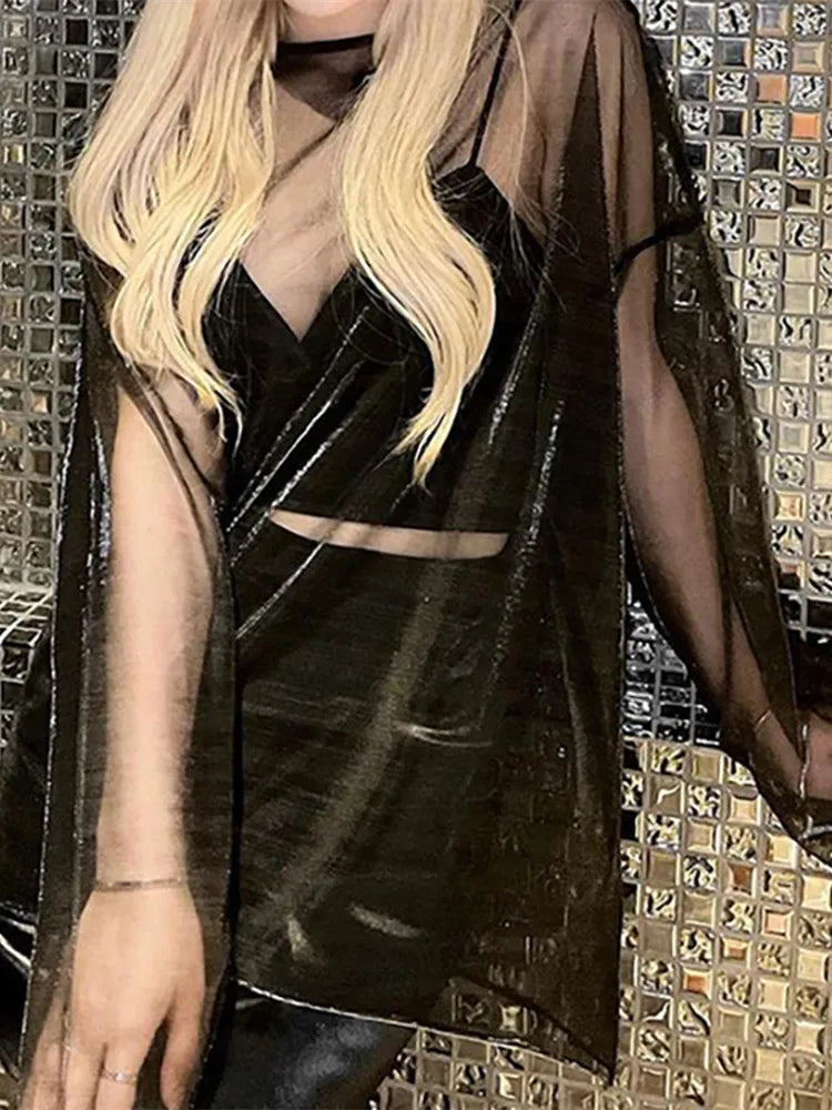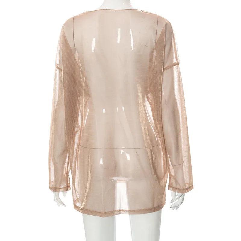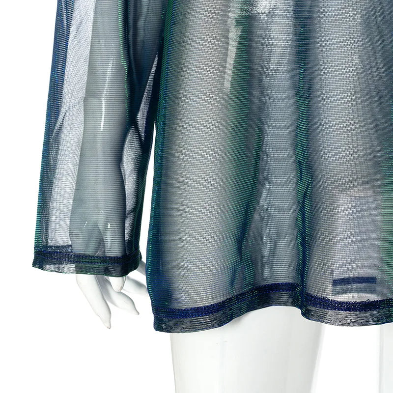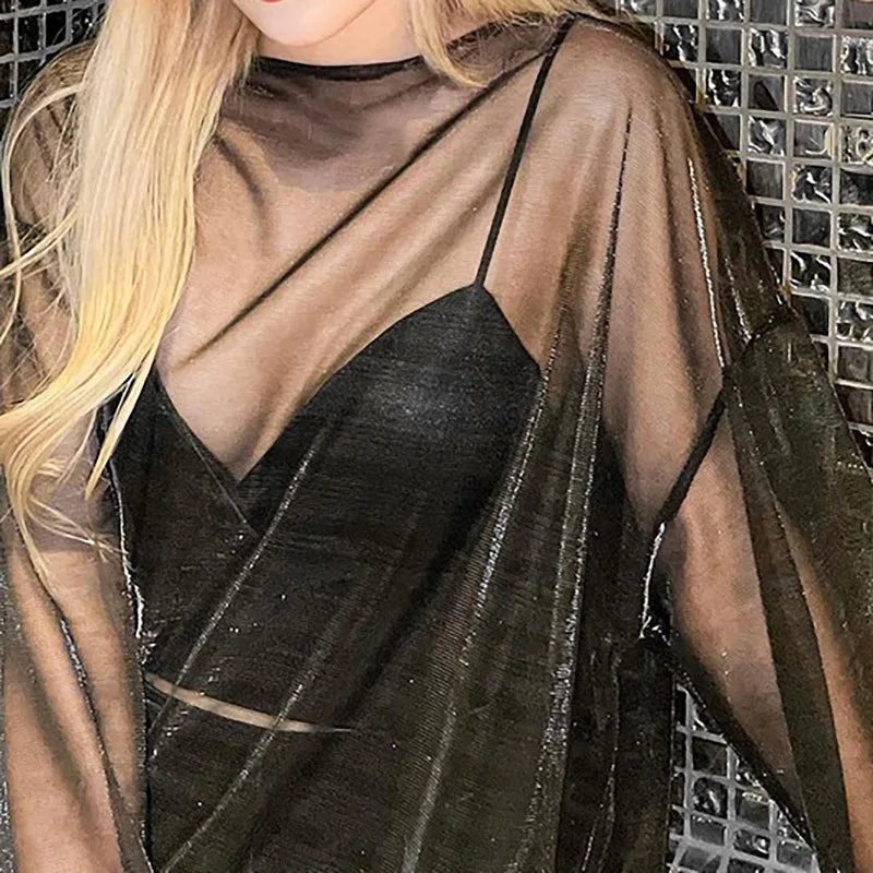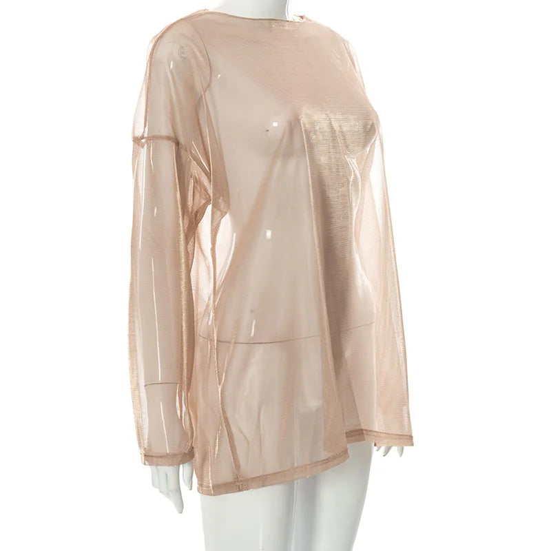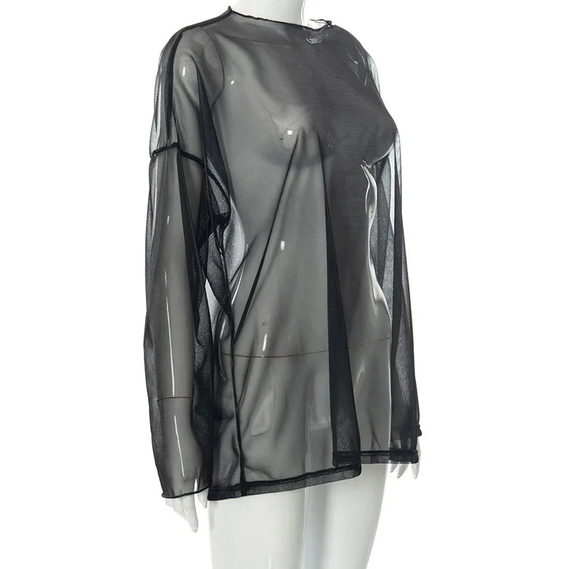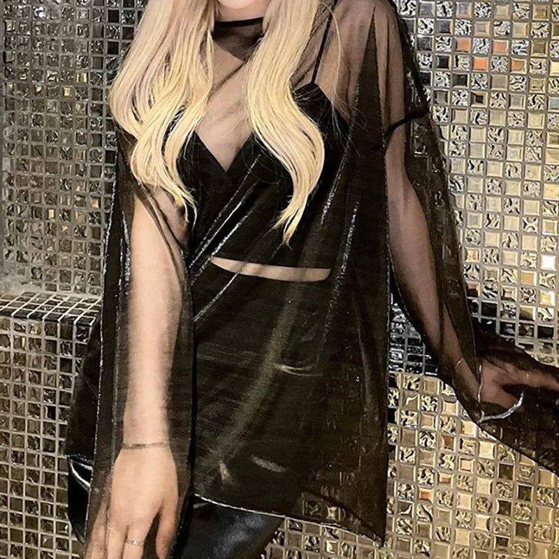 See Through T Shirts For Women Y2k Clothes Sexy Crop Tops Long Sleeve Oversized Tshirt O-Neck Club Outfit Reflective Egirl Tees