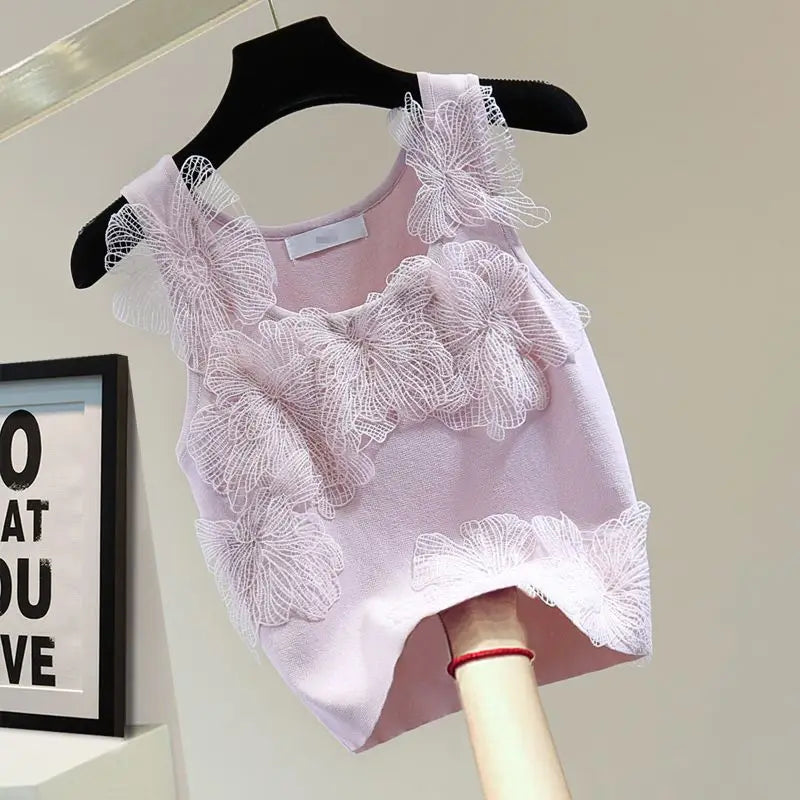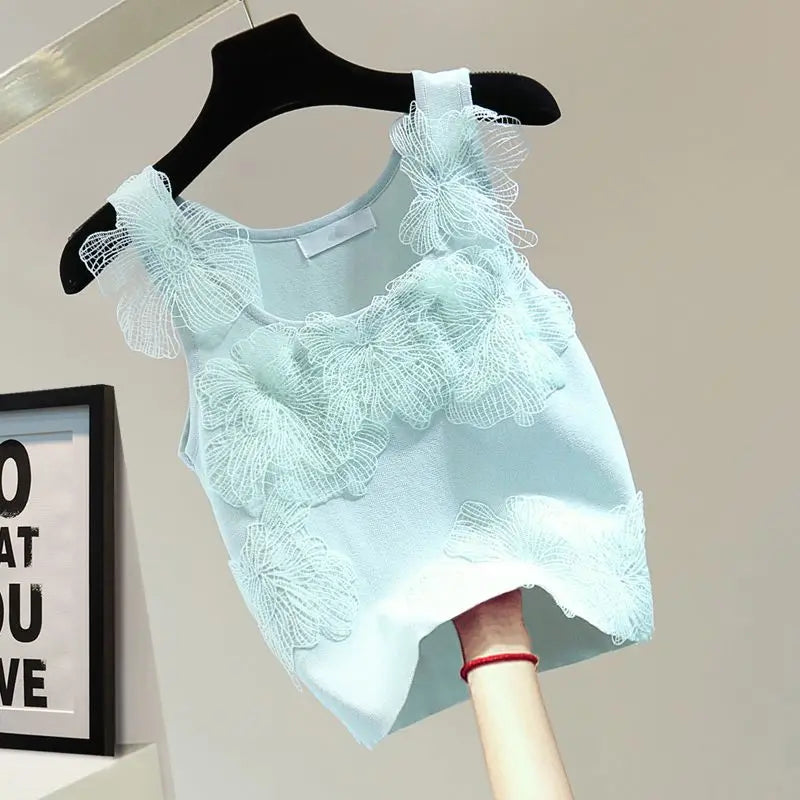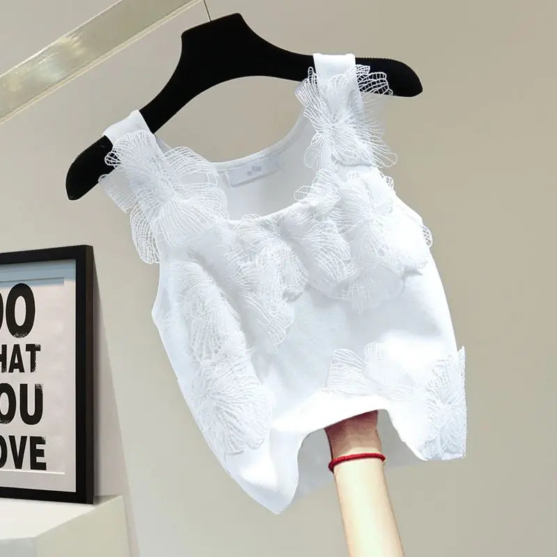 Sexy Crop Tops Women Heavy Embroidery Floral Tank 2025 Ropa Mujer Lace Butterfly Backless Tunic Vest Korean Summer Camis