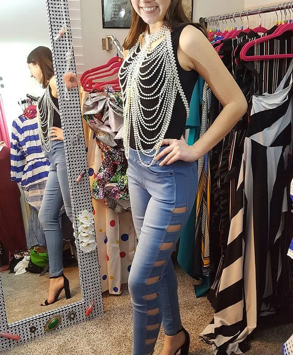 Sexy Women Pearl Shawl Necklaces Collar Shoulder Long Chain Pendants Necklaces Sweater Chain Wedding Dress Jewelry Accessories