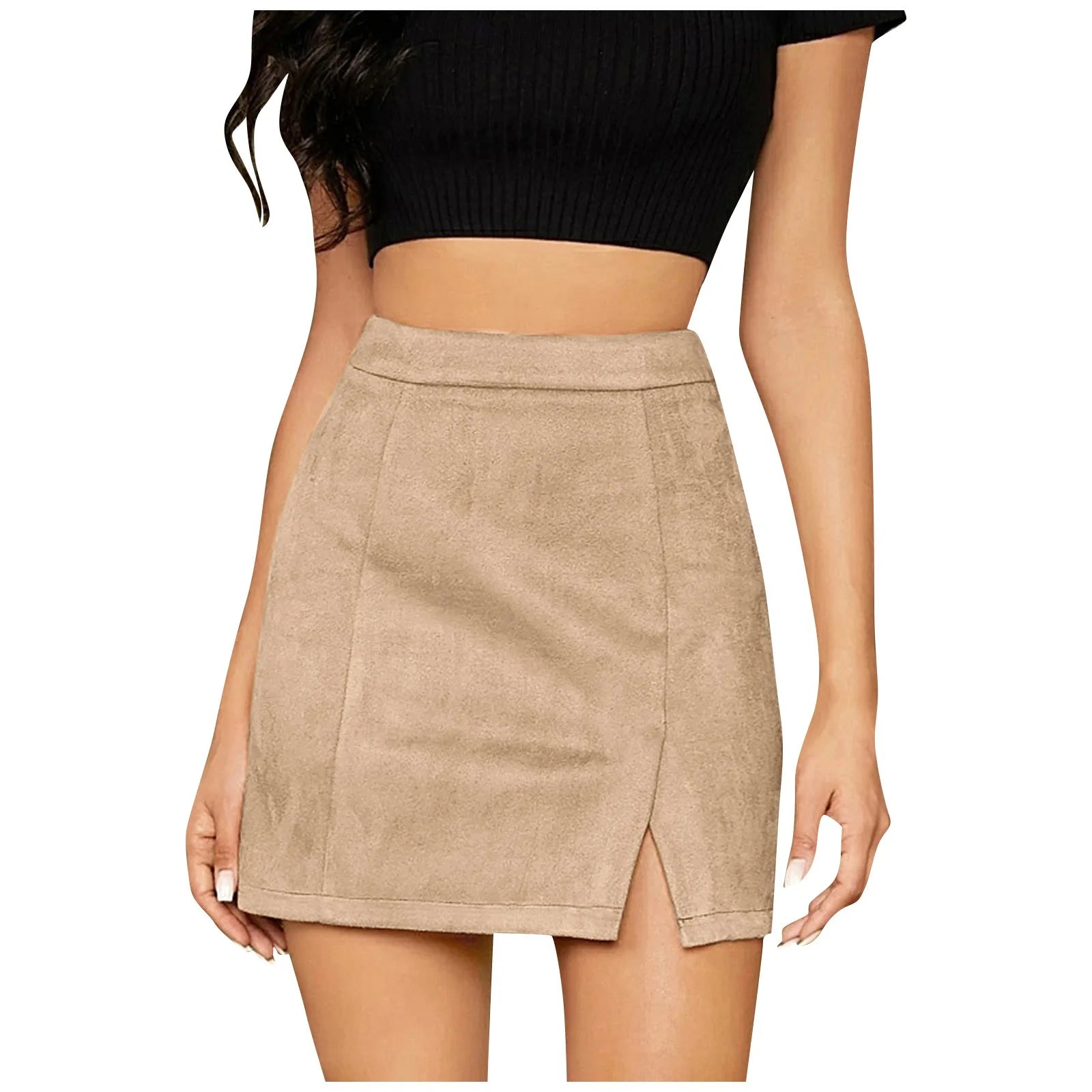Skirts For Woman Women'S High Waist Faux Suede Side Split Short Skirt Roupas Femininas Traf Women 2024 Faldas Mujeres New