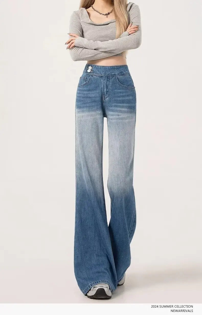 Slimming High-waisted Jeans for Women Spring Summer Pear-shaped Loose-fit Wide leg Jean Pants Bell Bottoms Female Denim Trousers