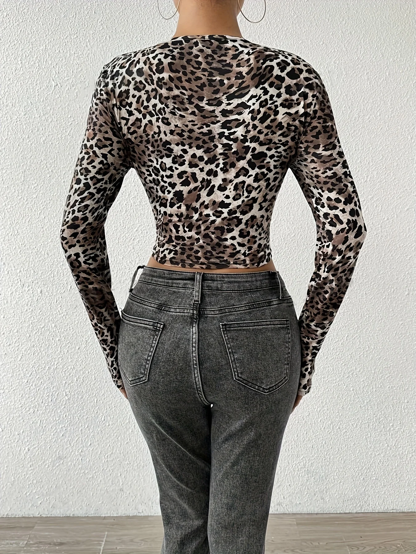 Spring and Summer Women's V Neck Long-Sleeved Leopard Print Tops Are Suitable for Spring and Summer, Comfortable and Versatile