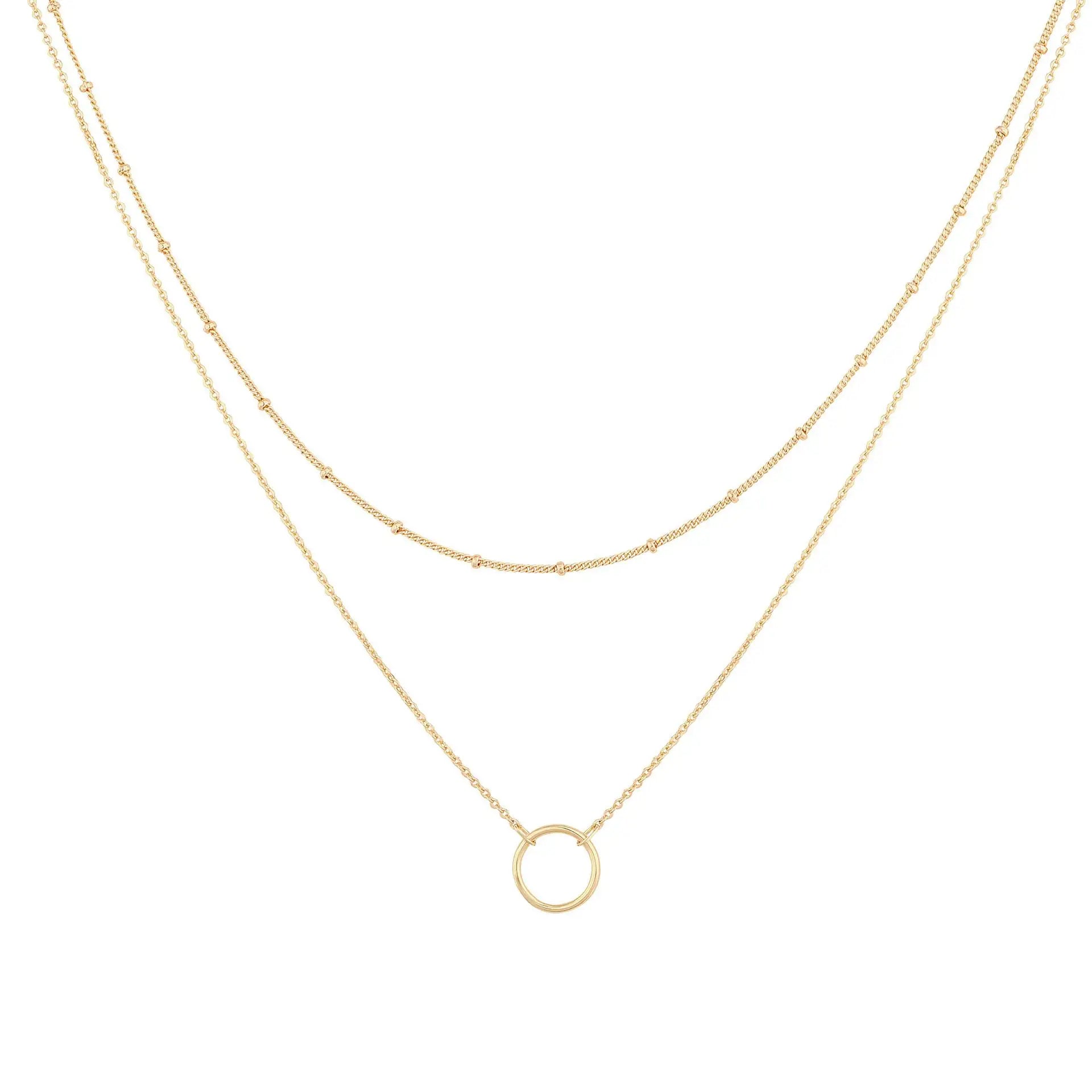 Stainless steel necklace for women Double necklace Vintage Bohemian round pendant necklace jewelry