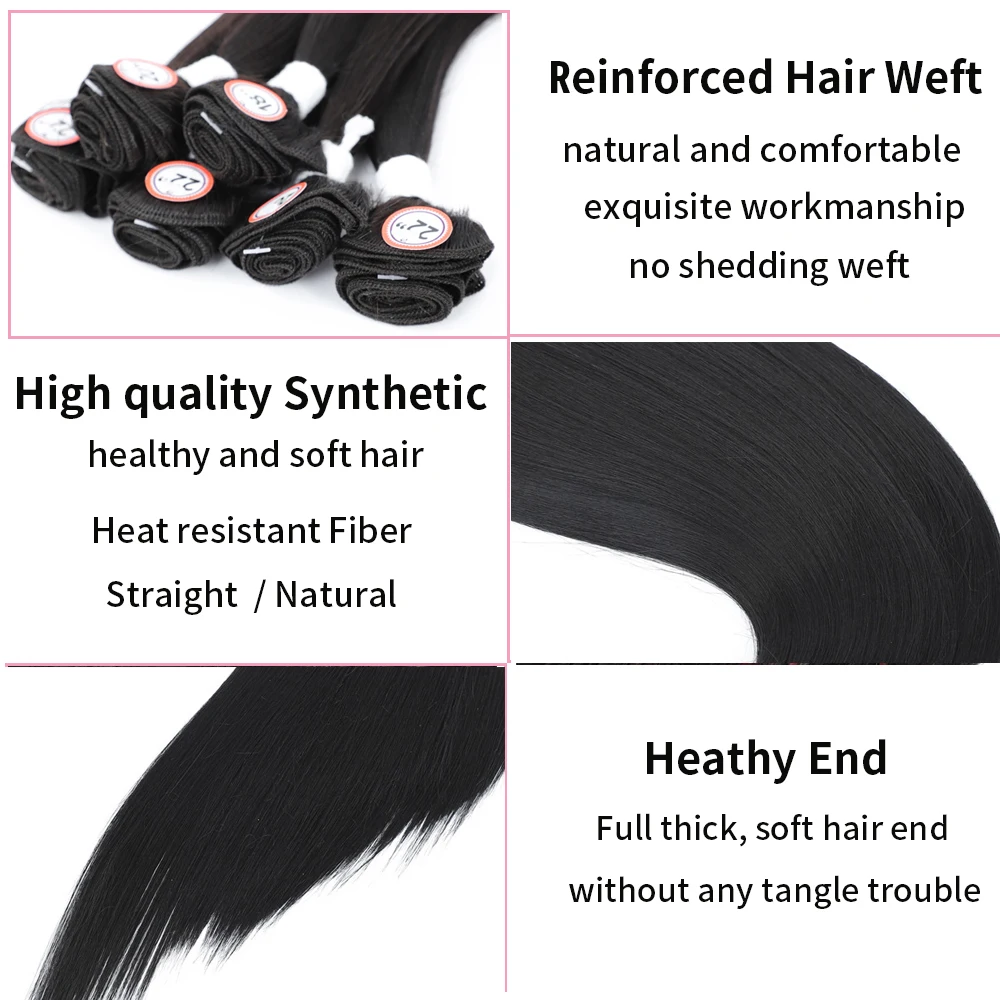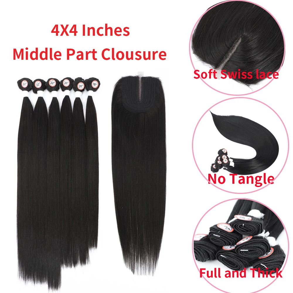 Synthetic Hair Weaving Bundles with 4*4 Clousure Lace Frontal Ombre Wig Natural Wave Straight Hair Extensions Soku Hair Weave