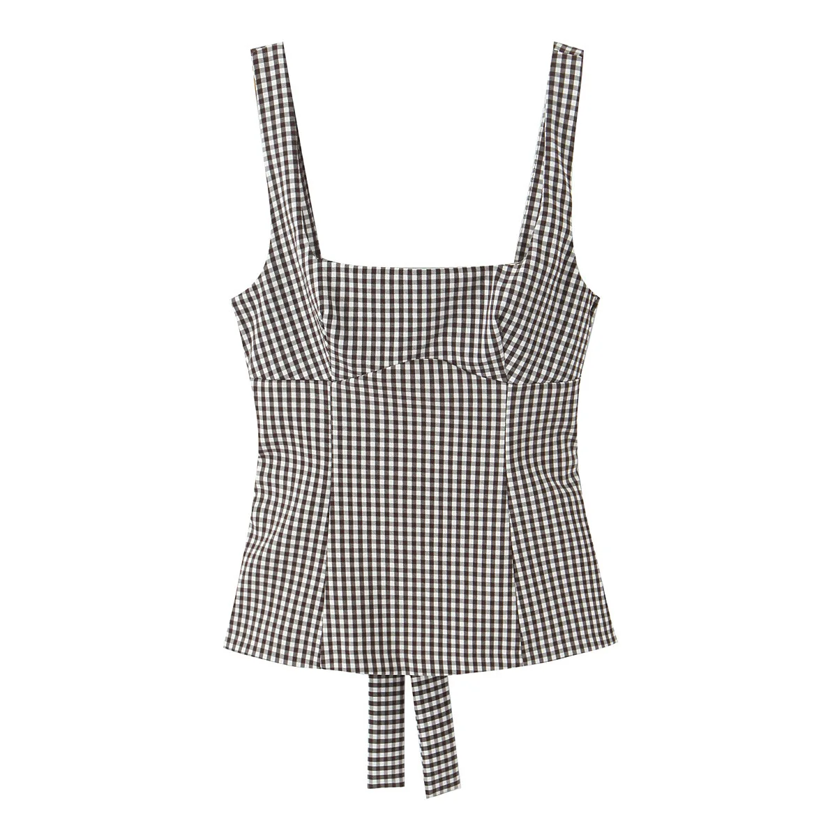Tops For Women Bow Embellished Small Plaid Top 2025 Summer Camisole Sleeveless Top Woman Tops Women's Tank Top