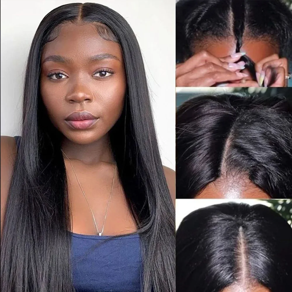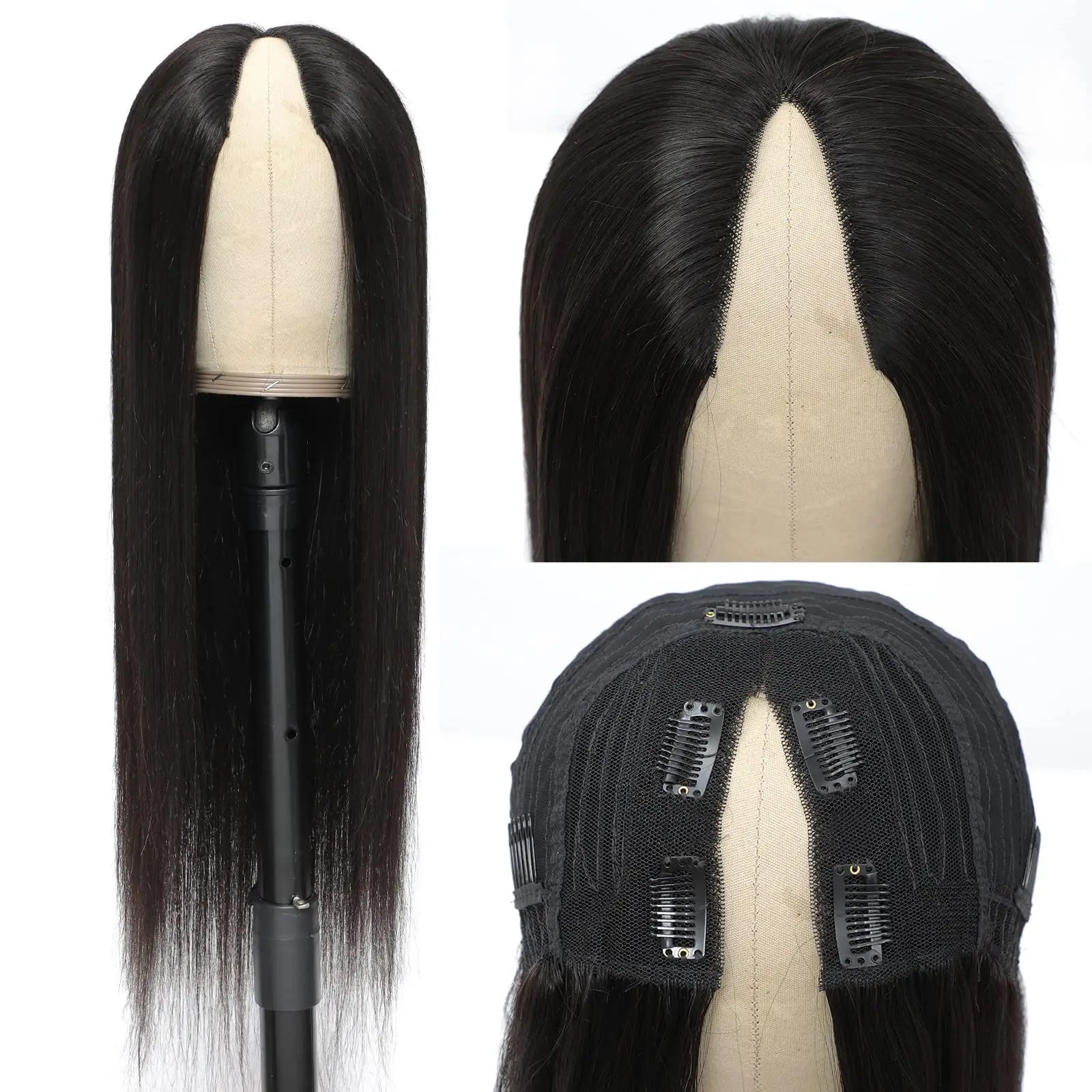 V Part Wig Straight Long Human Hair Wigs Mongolian Straight V Part Human Hair Wigs V Part Machine Made Wigs No Leave Out