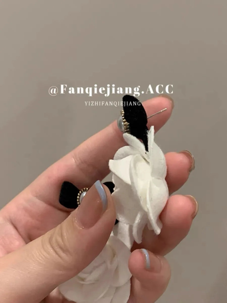 Vintage Camellia Earrings Velvet Bow Earrings for Women Luxury Jewelry Earrings Woman Stud Earrings