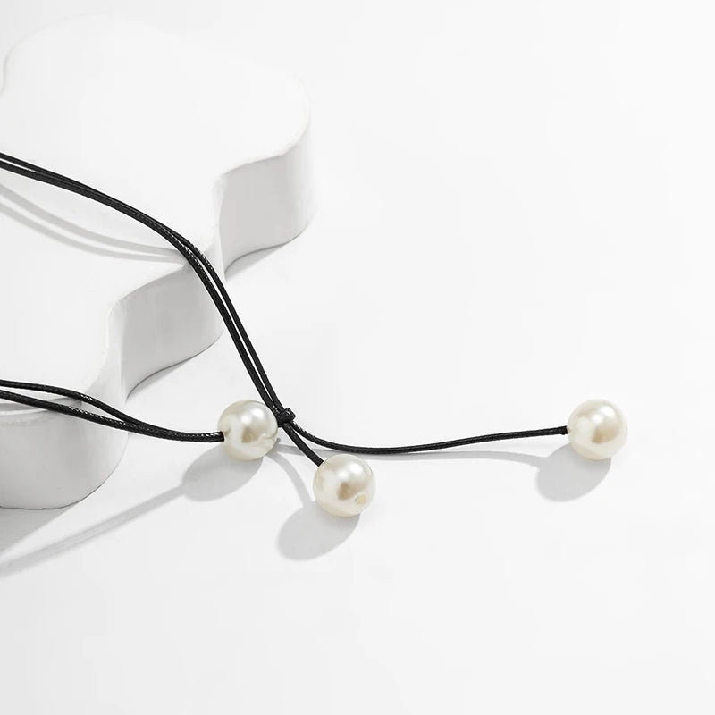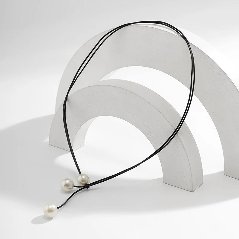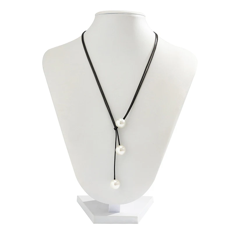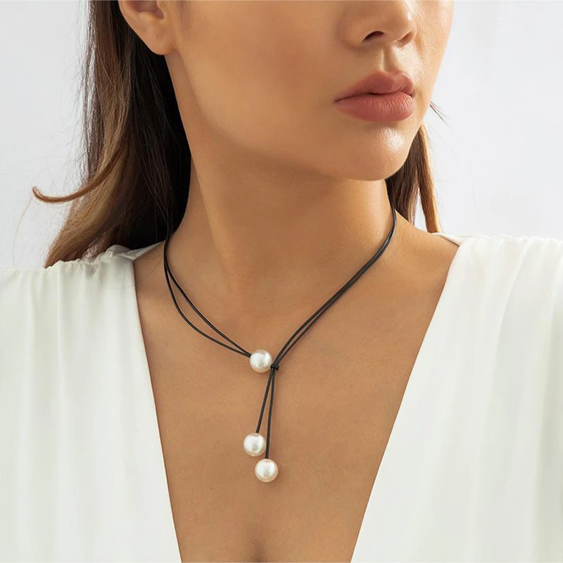 Vintage Fashion Rope Chain Necklace Women Fashion Statement Handmade Imitation Pearl Pendant Adjustable Neck Jewelry Gift
