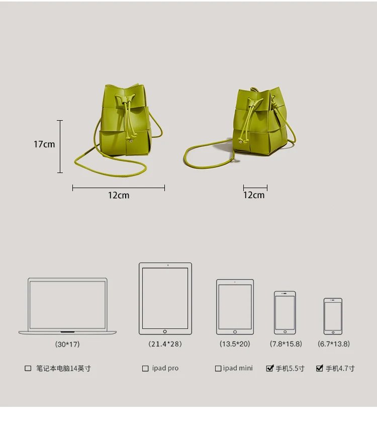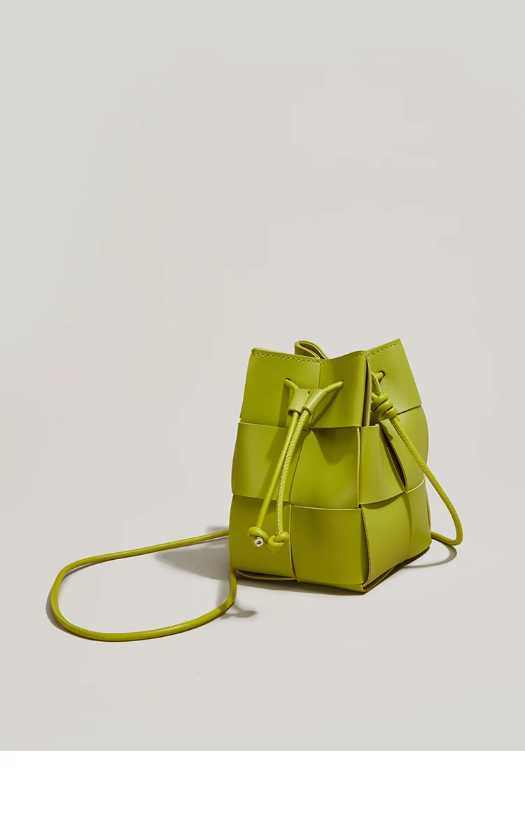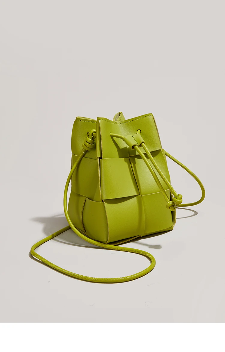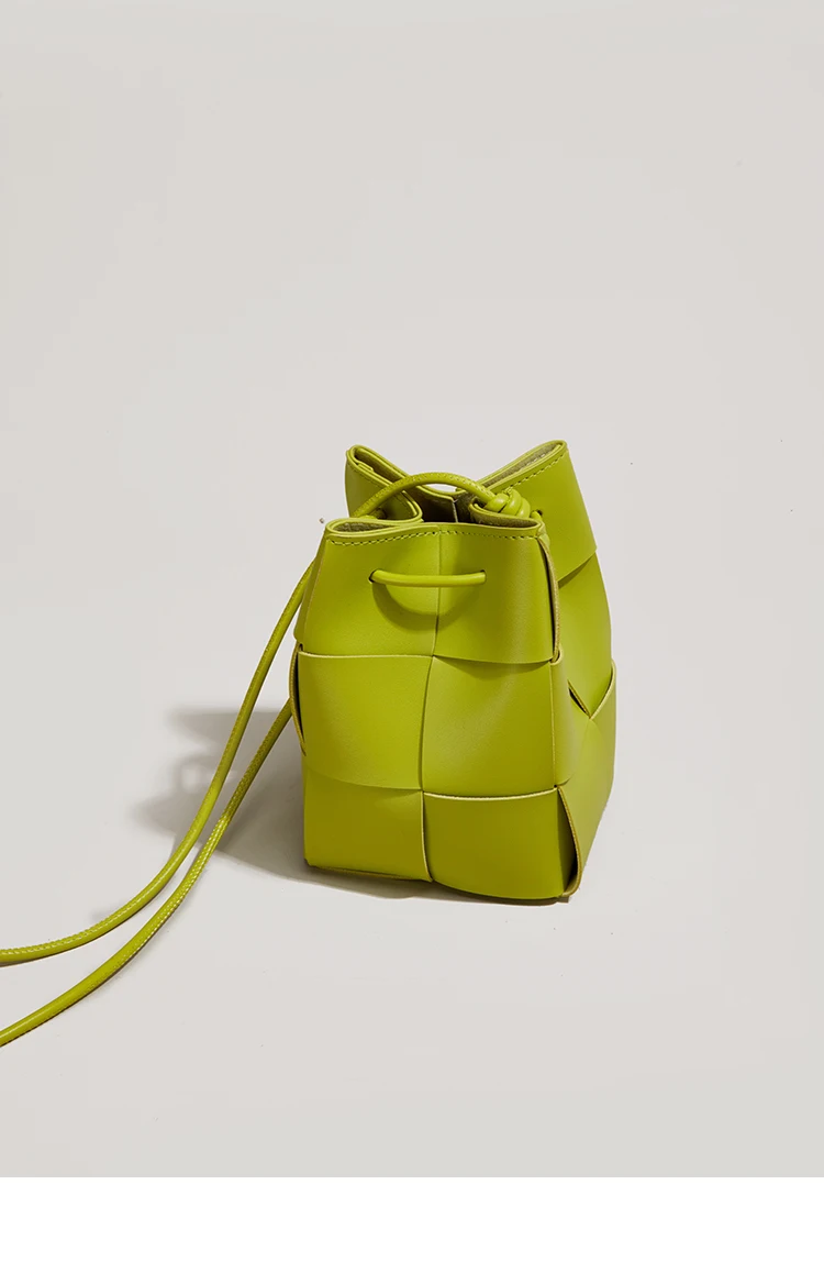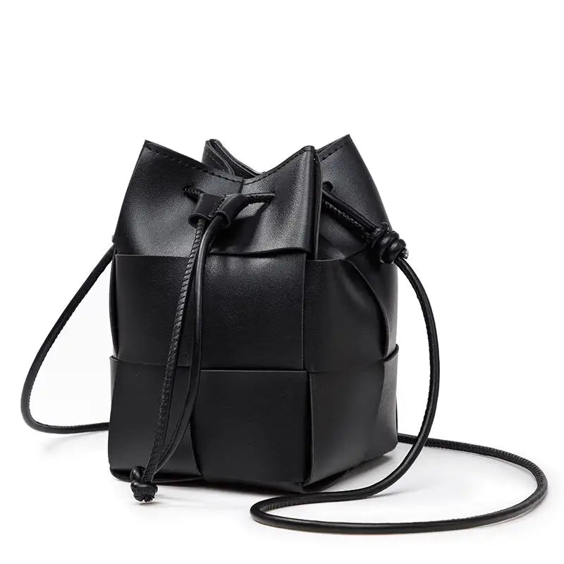 Weave Handbag Women Woven Bags Small Drawstring Bucket Shoulder Messenger Bags Luxury Famous Brand Designer Purse Female bag