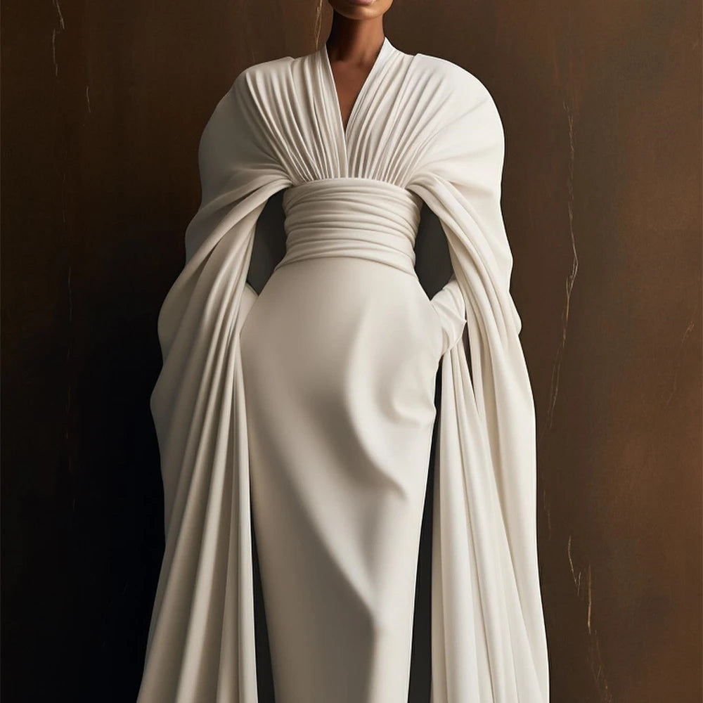 White Women Prom Dresses Elegant A-line Long Sleeves Floor Length Simple Warm Designer High-end Fashion Evening Party Gowns