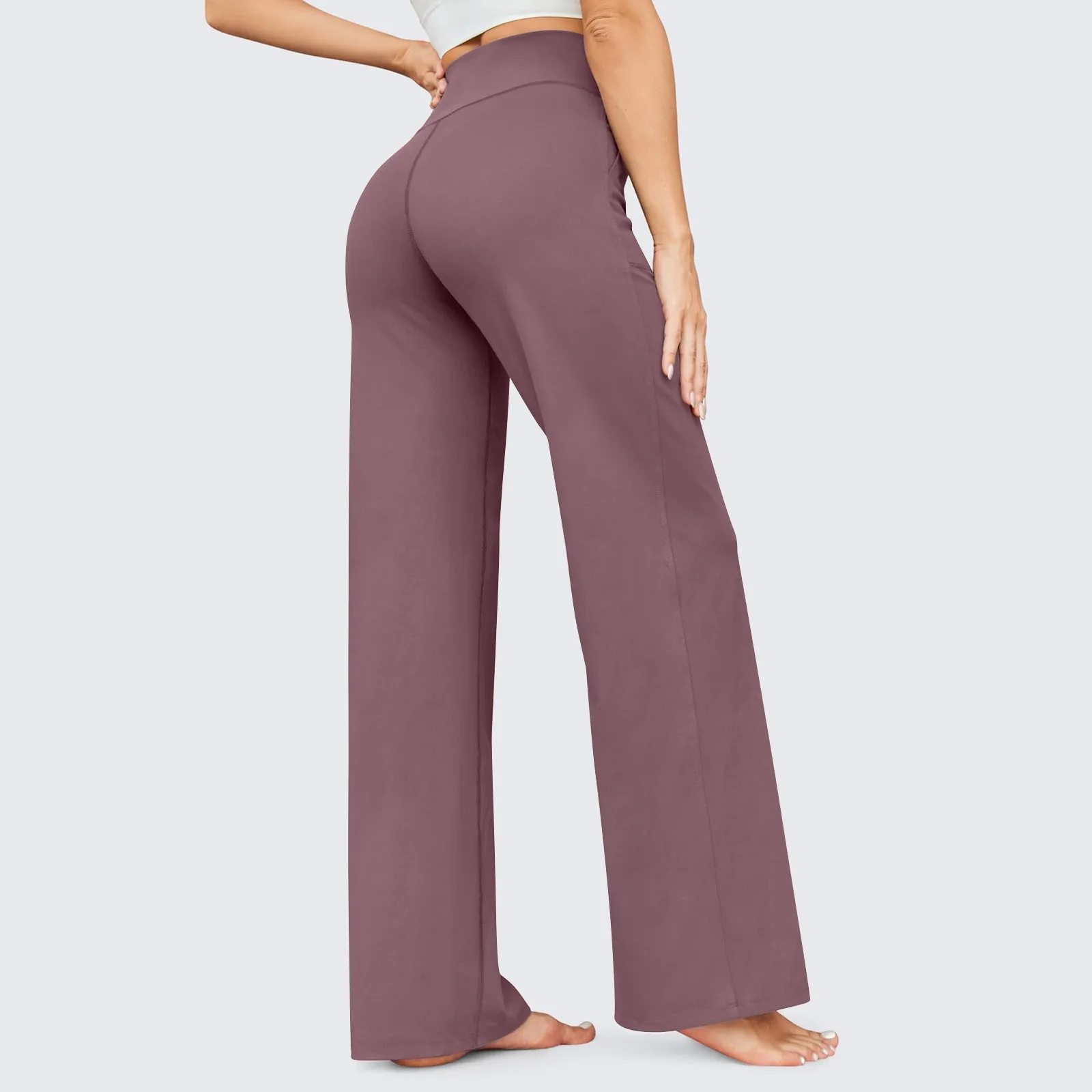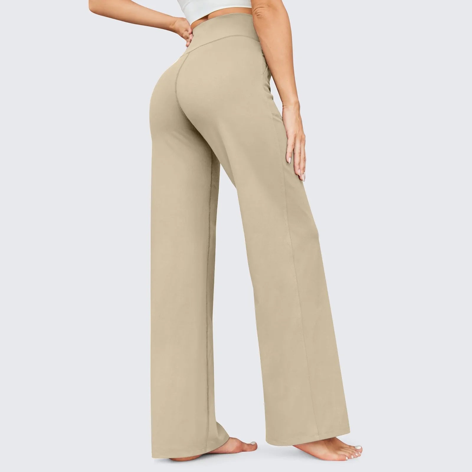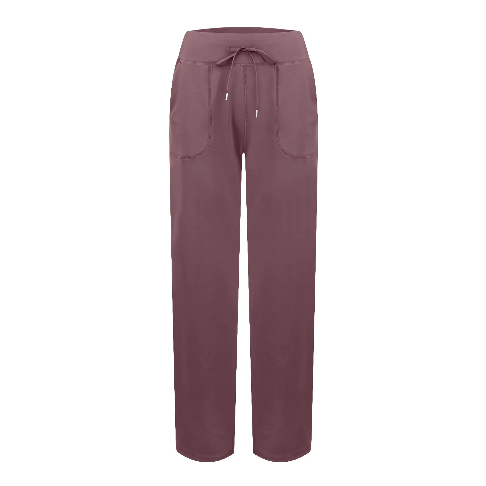 Wide Leg Yoga Pants For Women Solid Color High Waist Sweatpants With Pockets Stretch Comfy Workout Sports Trousers