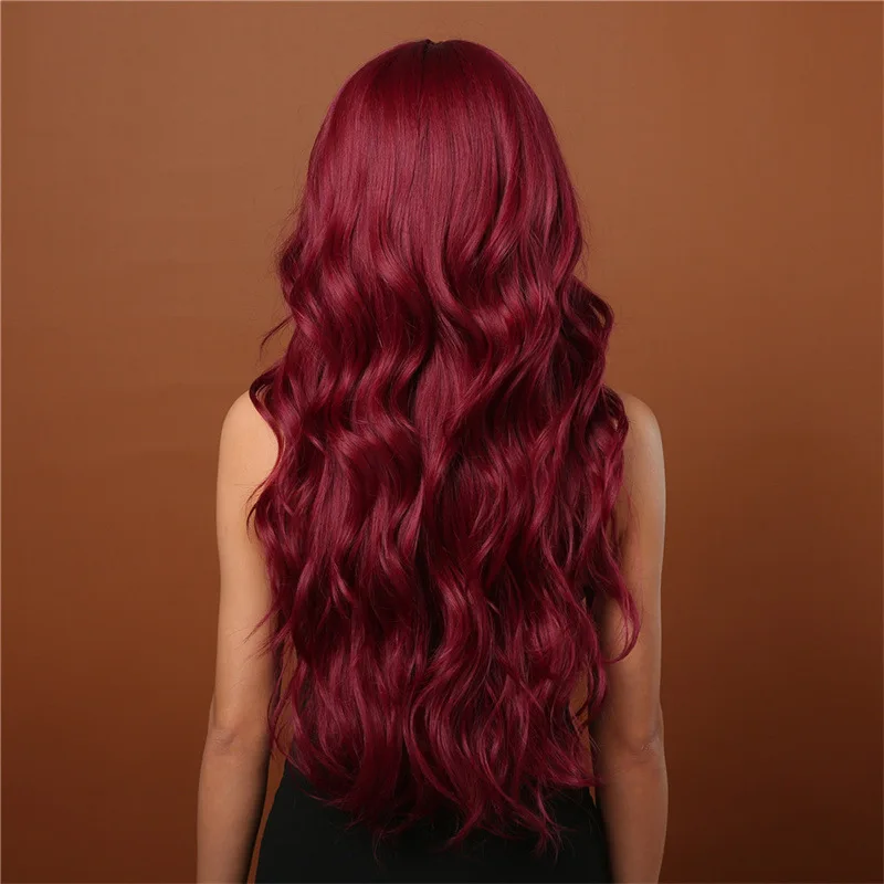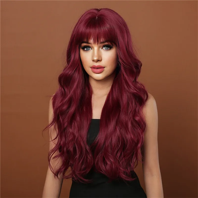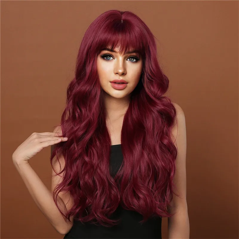 Wig woman air bangs long hair big waves dyed synthetic fiber high temperature silk full head set selling long curly hair