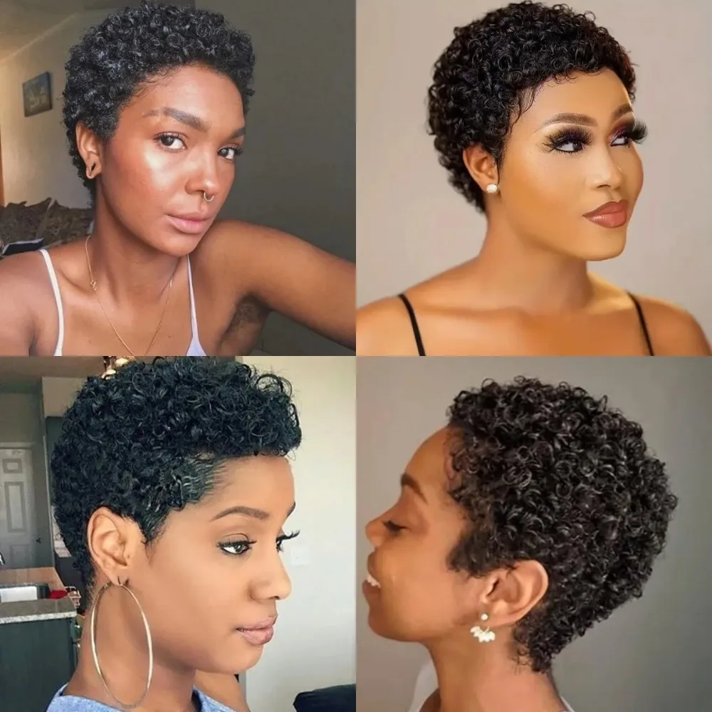 Wigs for Women Curly Wig with Bangs Full Machine Made Wig Machine Made Short Human Hair