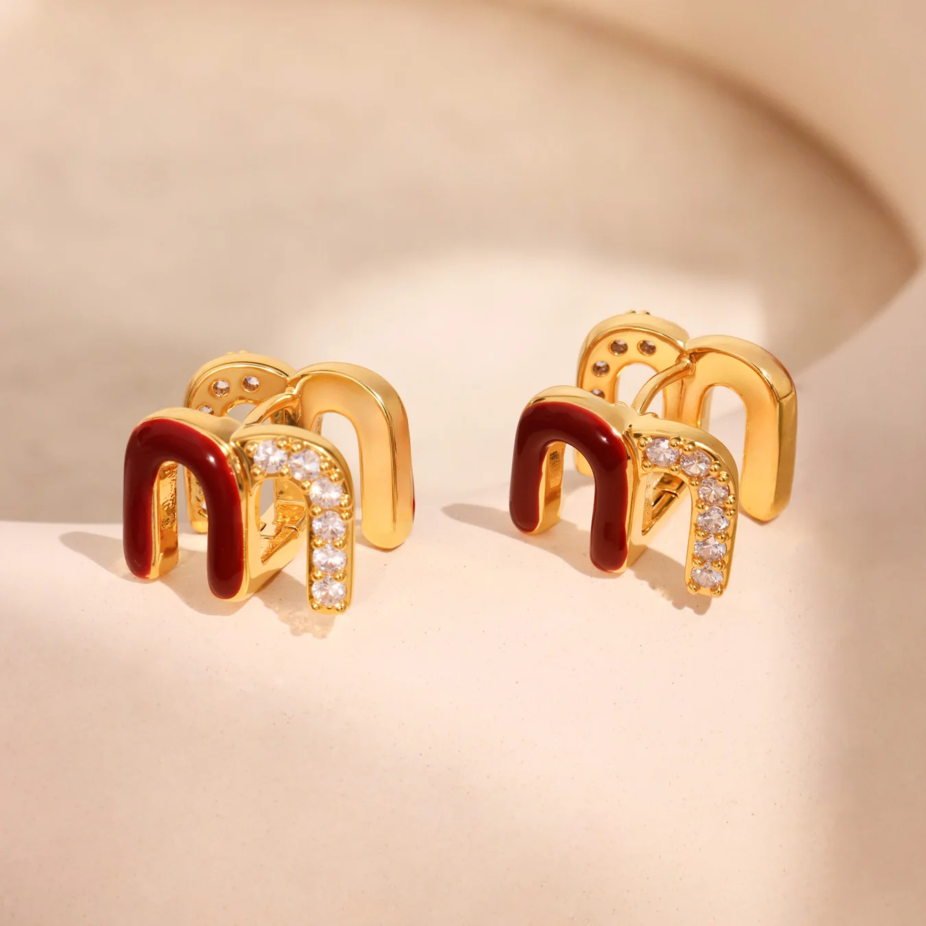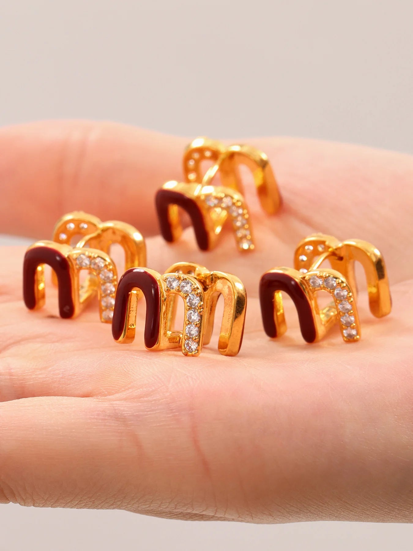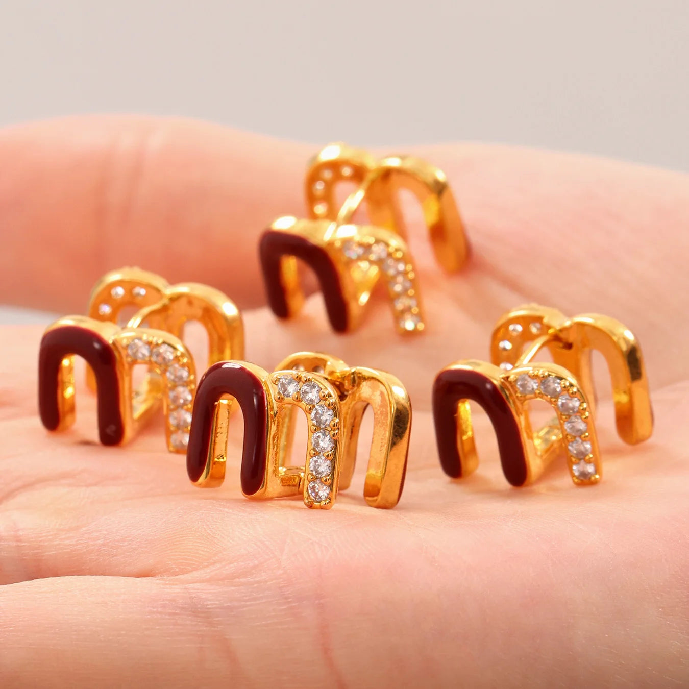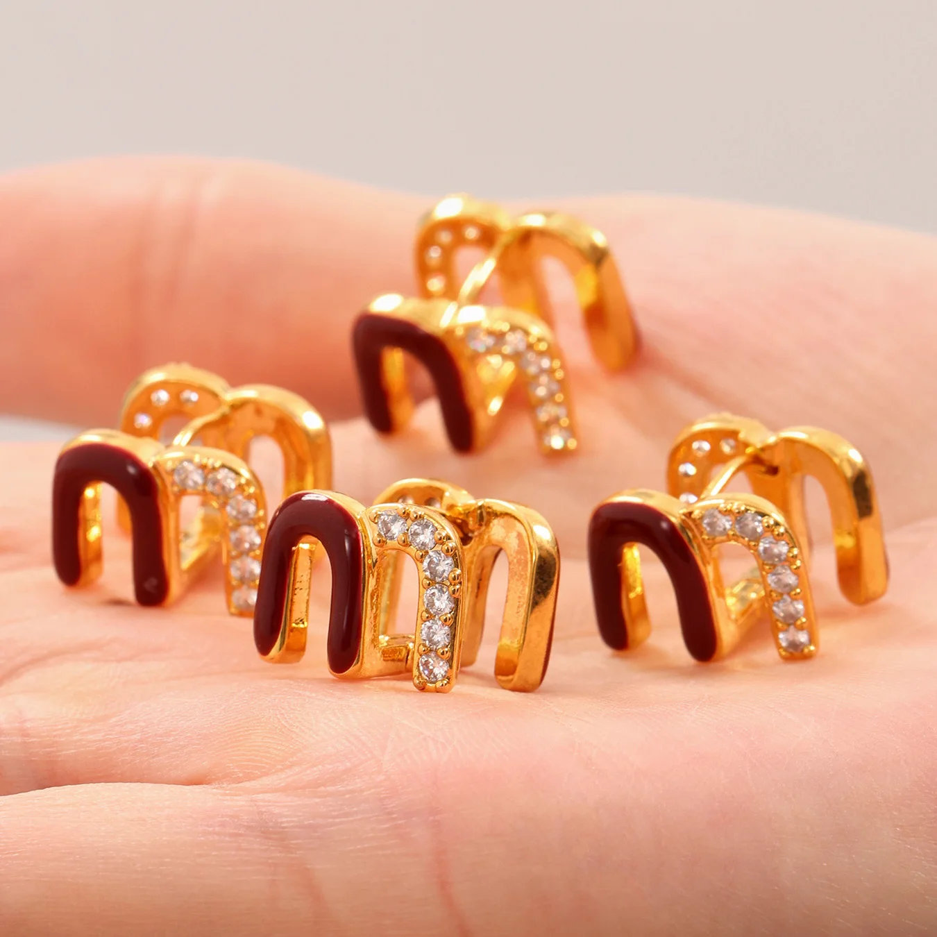 Wine Red Enamel Earrings For Women Copper Gold Plated Trendy Female Ear Studs Girls Charming Jewelry