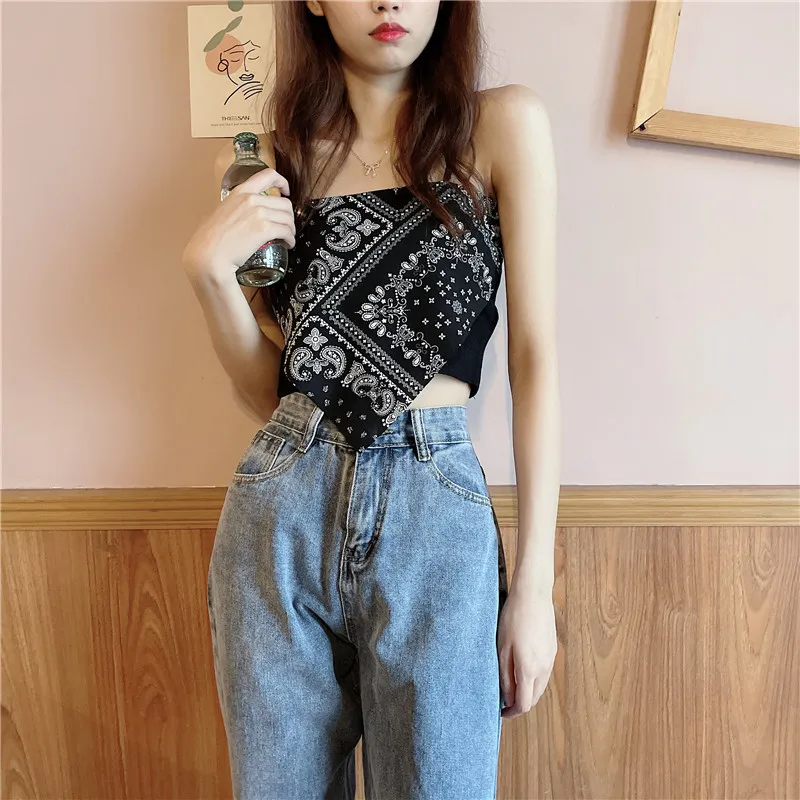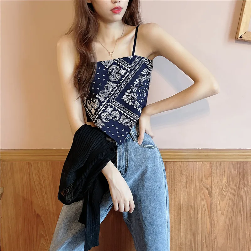 Woman Sexy Floral Tank Tops Women Corset Femme New Style Tanks Crop Camisole Fashion Knit Camis High Street Irregularity Vest
