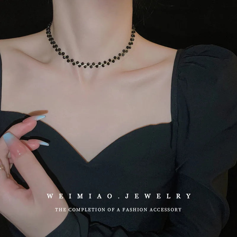 Women Choker Necklace Double Layer Beads Necklace Gift for Friend Silver Color Geometric Necklace Wholesale Collar Jewelry