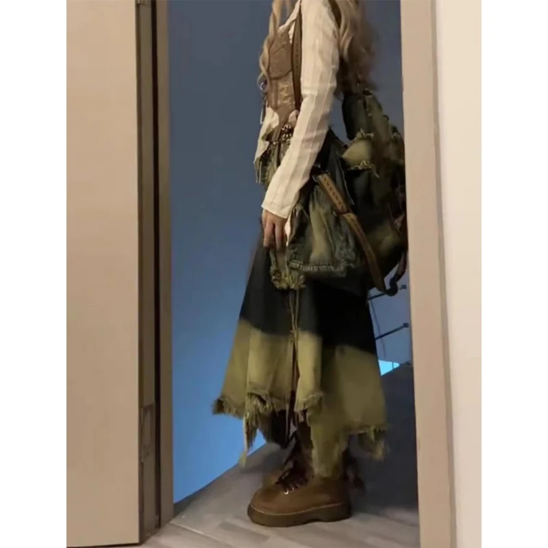 Women Denim Long Skirt Harajuku Y2k 2000s Vintage Skirts 90s Aesthetic Streetwear Fashion Korean Style A-Line Jean Skirt Clothes