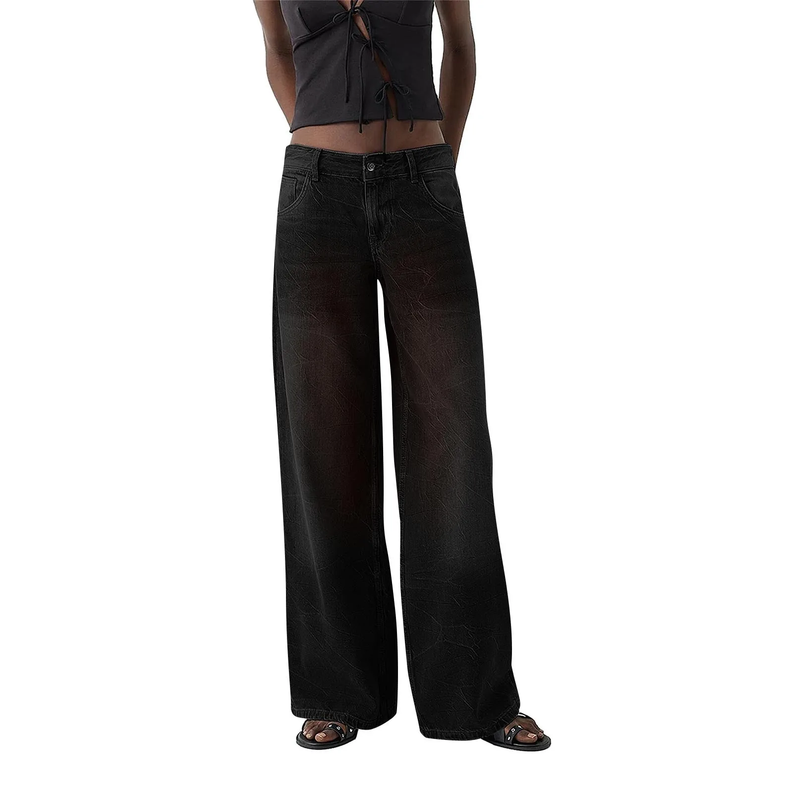Women Fashion Denim Jeans Retro Ladies Loose Straight Pants Mid Waist Button Pocket Trousers Casual De Mujer Pantalon Femme