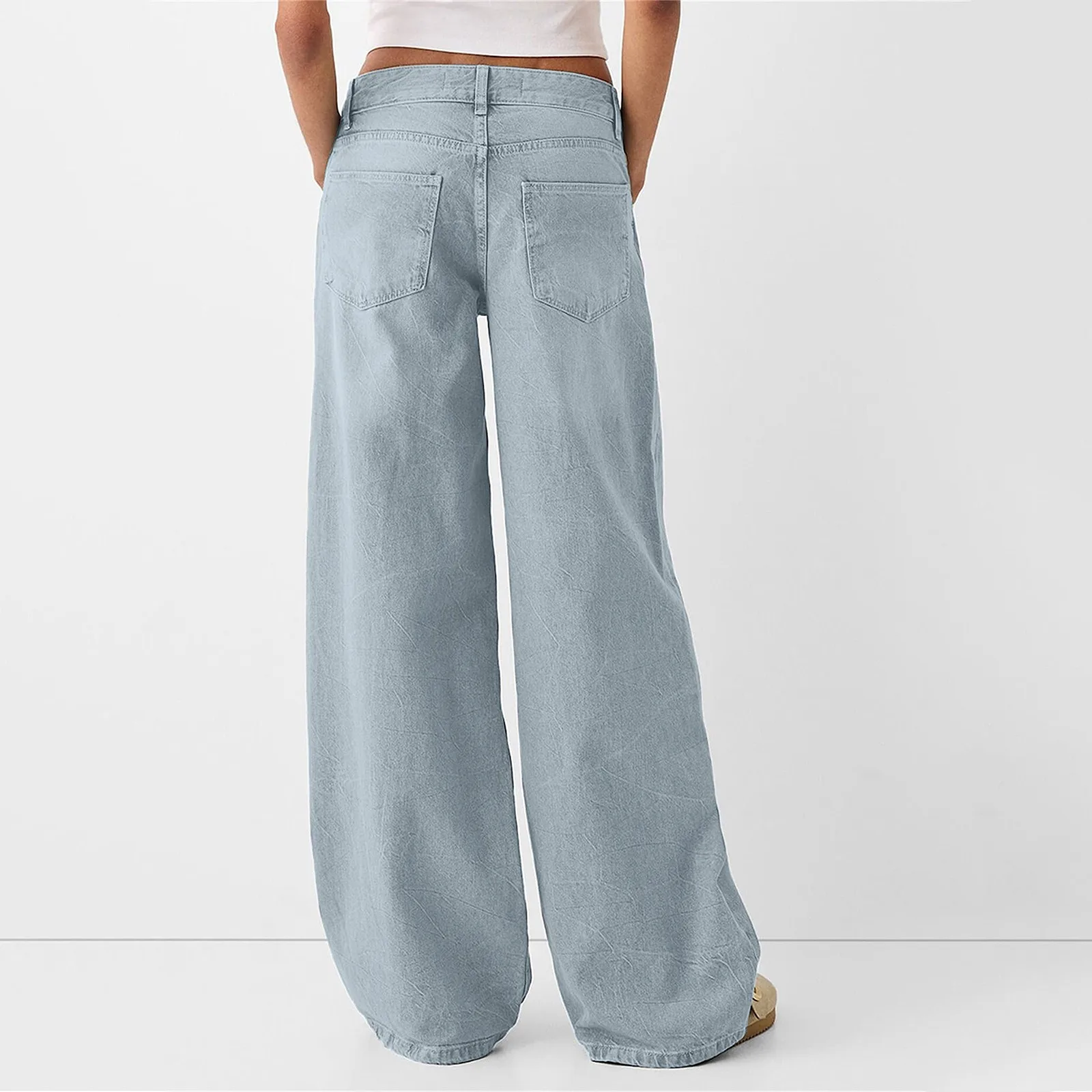 Ladies Fashion Retro Personality Wash Old High-Waisted Retro Loose Straight Leg Jeans